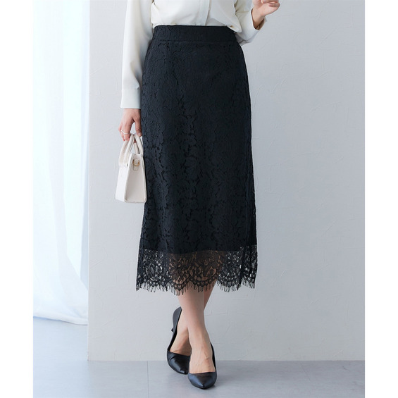 洗える総レースタイトスカート(選べる2レングス) 大きいサイズ