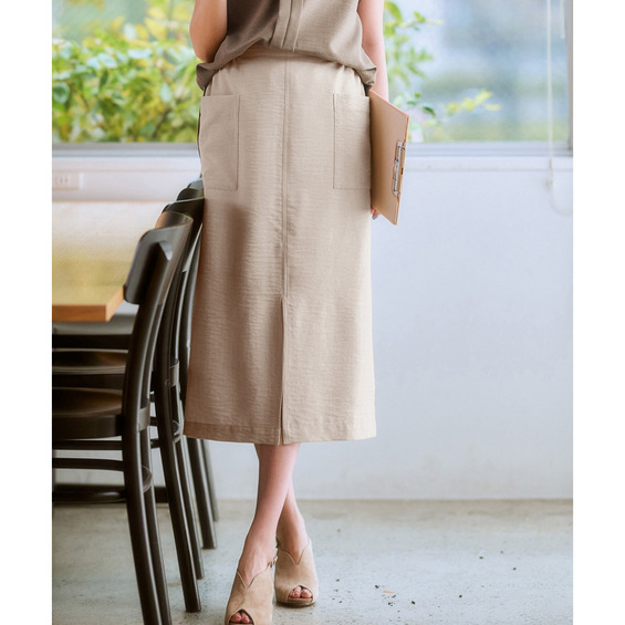 麻調合繊ナロースカート(しわになりにくい・接触冷感・UVカット・ウォッシャブル) 大きいサイズ