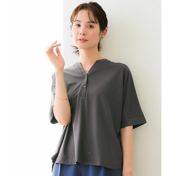 すっきりVゾーン、二の腕や肘をカバーするドルマンシルエット、背中はのっぺり感を解消するバックギャザーが入っています。