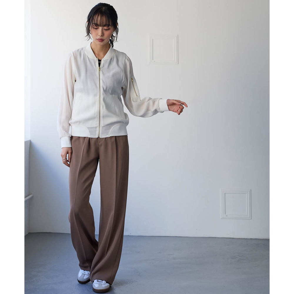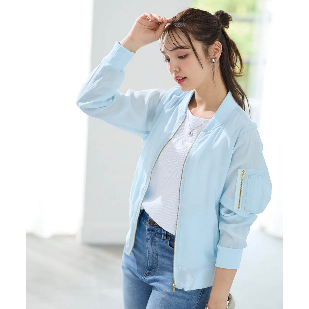 袖のポケットやリブ切替など、本格的なMA-1のディテールをきっちり盛り込んだシアーブルゾンです。