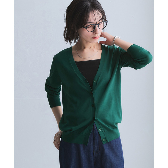【アイスクリーンプレミアム】Vネックニットカーディガン(持続冷感・接触冷感・毛玉になりにくい・UVカット・洗濯機で洗える・遮熱) 大きいサイズ