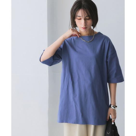 オーバーサイズでもデコルテがきれいに見える絶妙な開きのラウンドネックと、ドロップショルダーで女性らしい印象に。