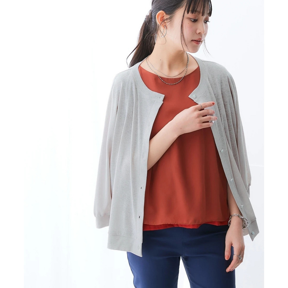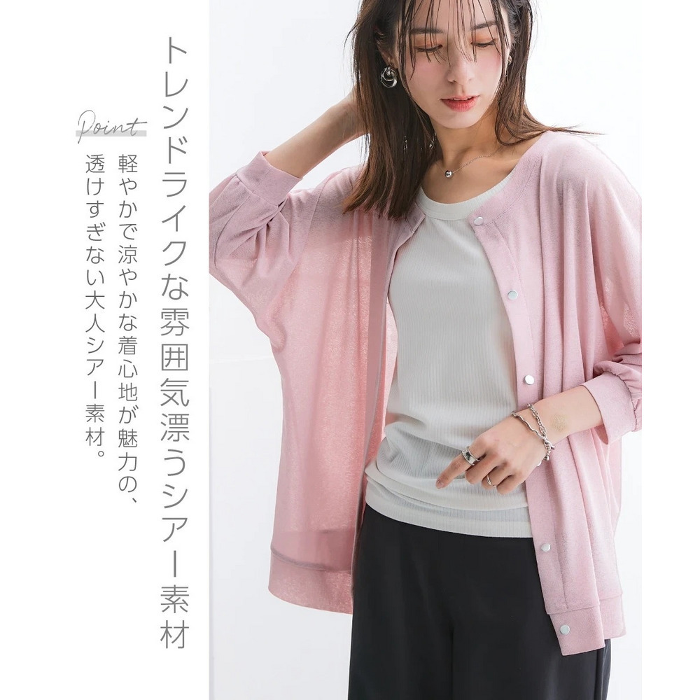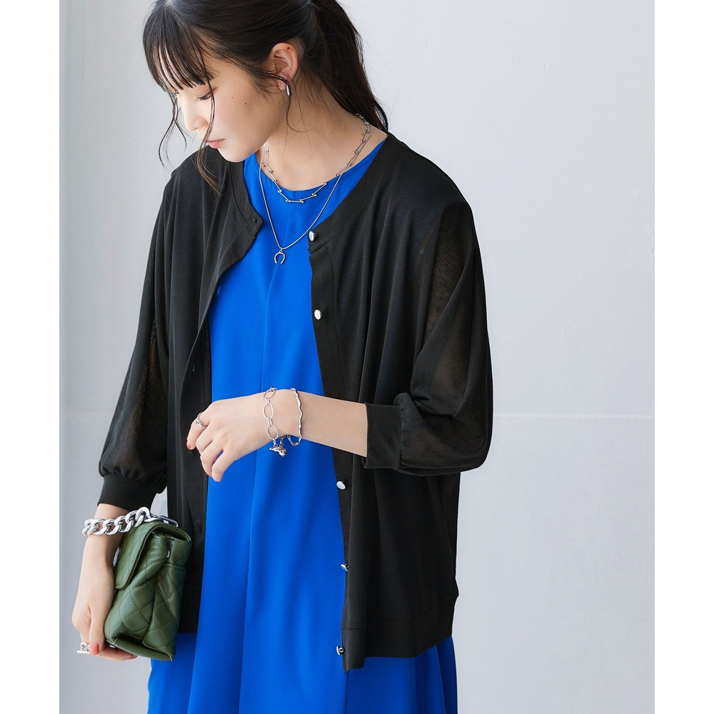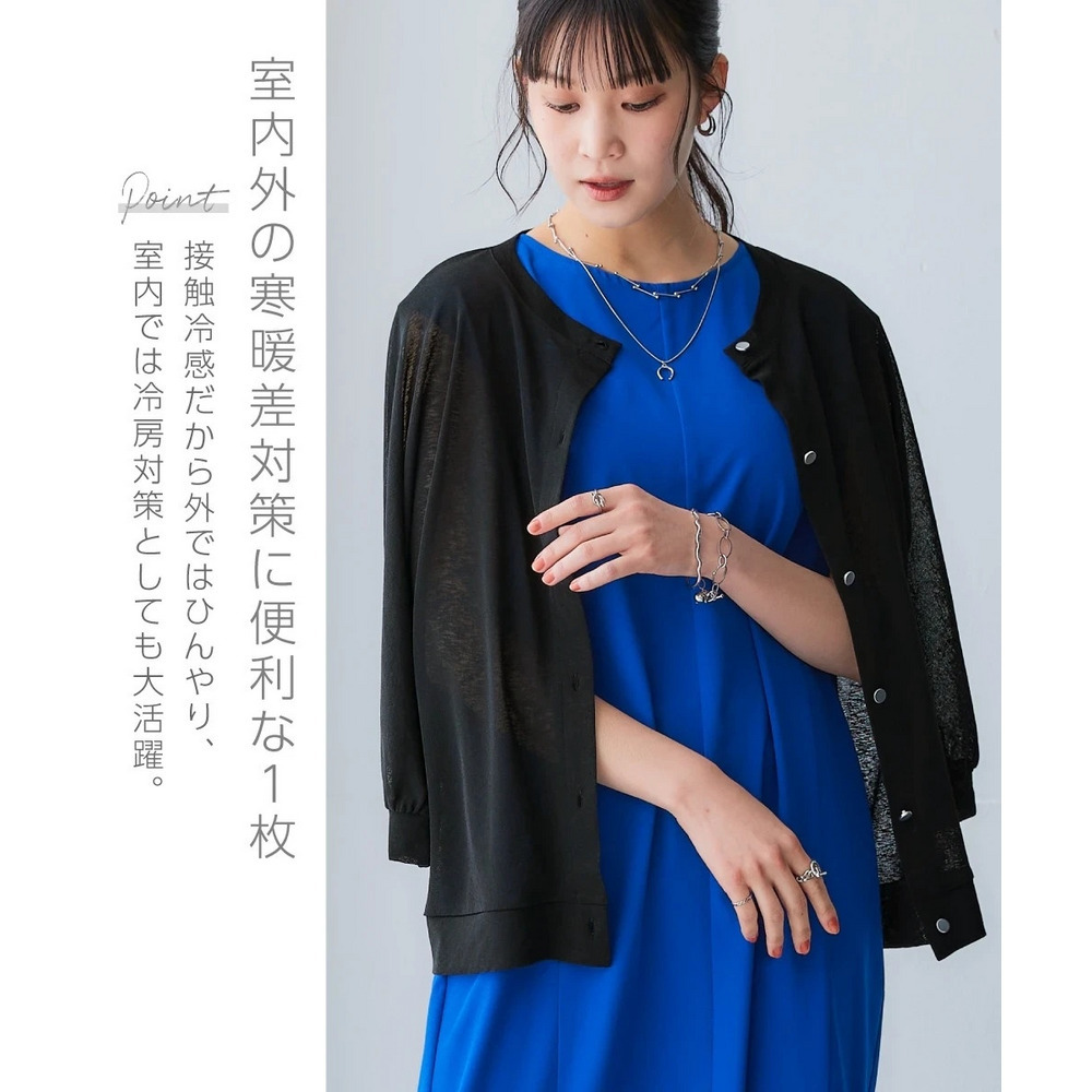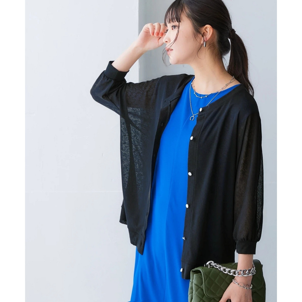 ひんやり涼しいシアースラブクルーネック7分袖ゆるカーディガン(UVカット・接触冷感) 大きいサイズ