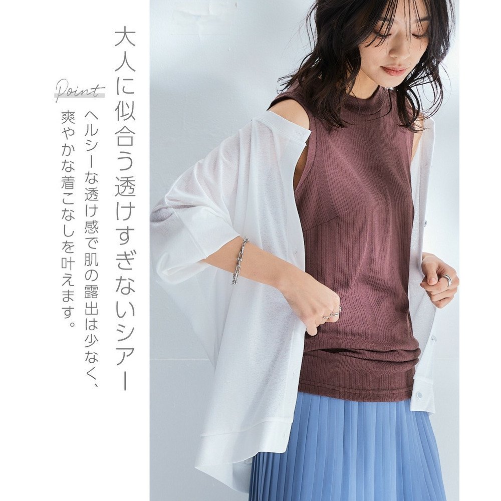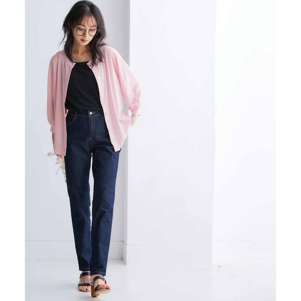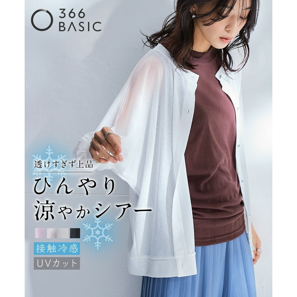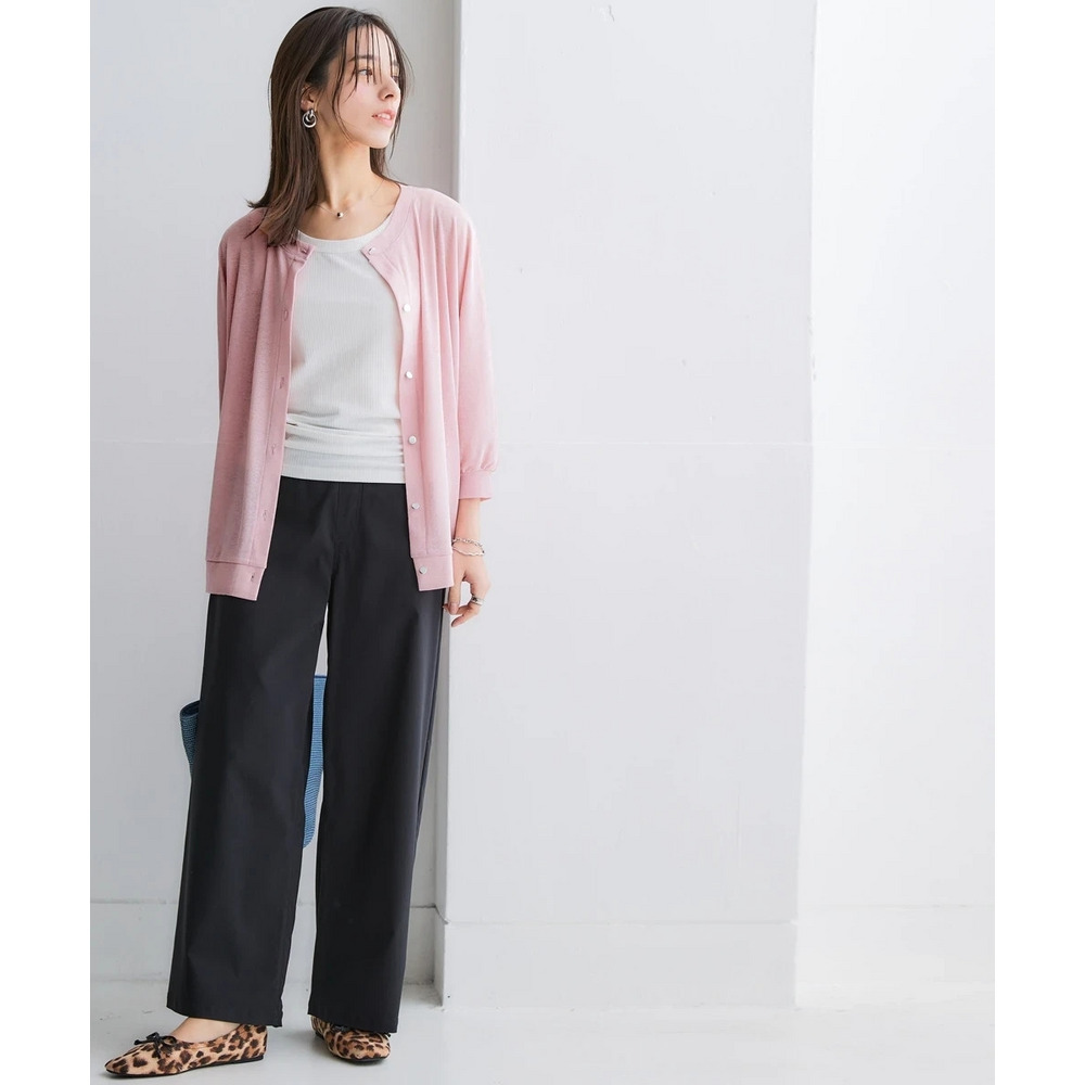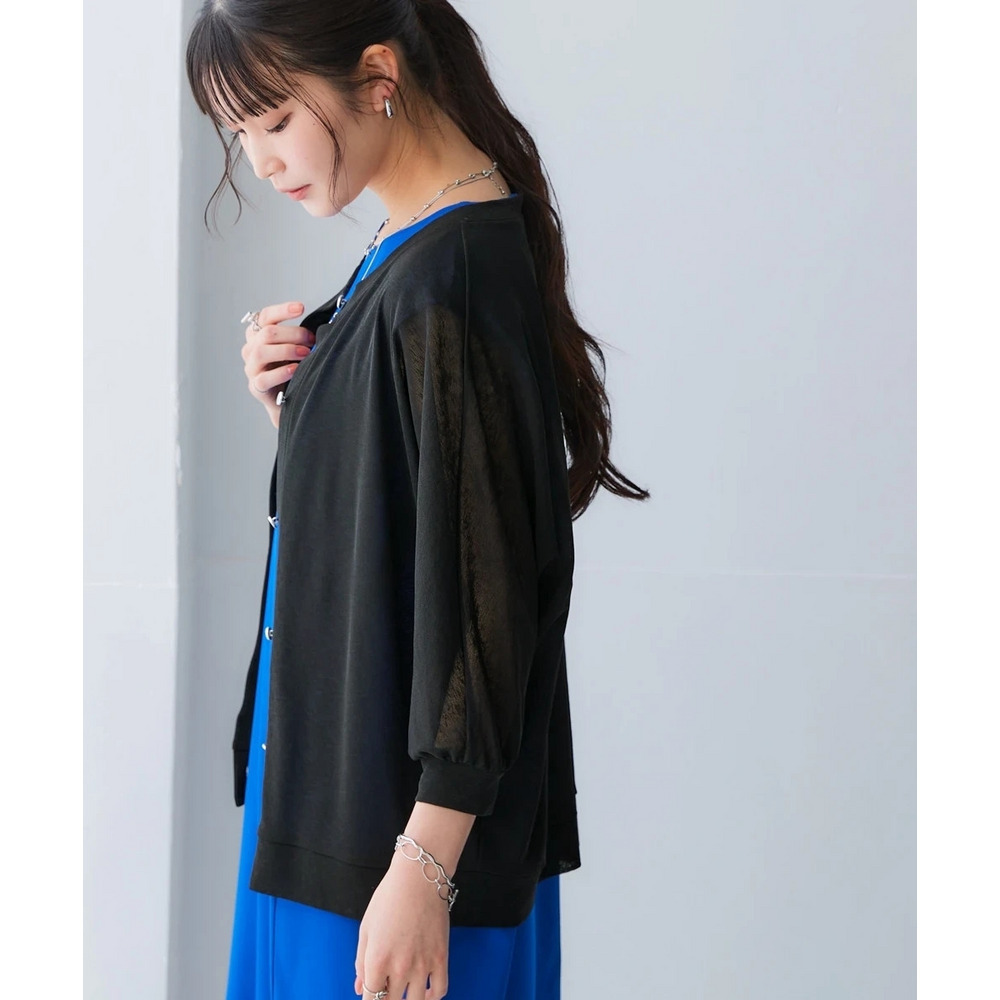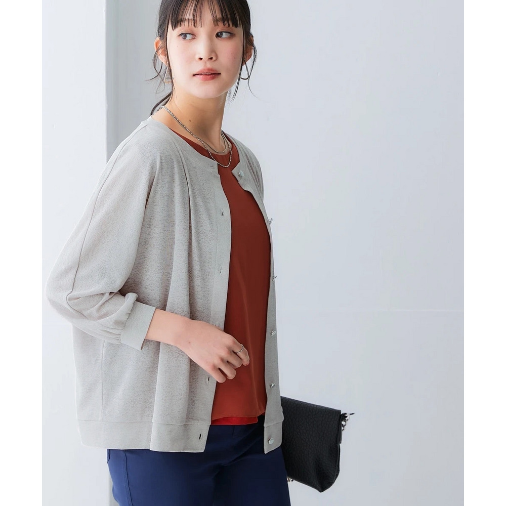 ひんやり涼しいシアースラブクルーネック7分袖ゆるカーディガン(UVカット・接触冷感) 大きいサイズ