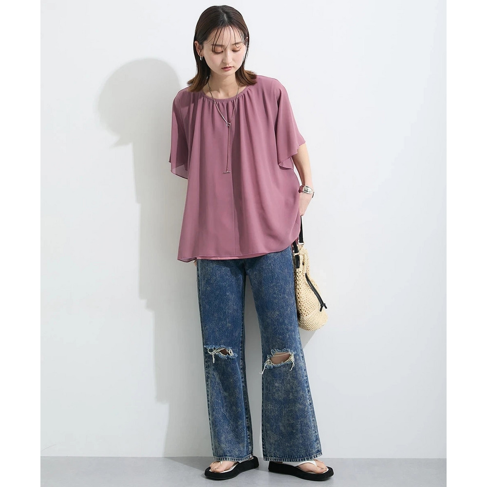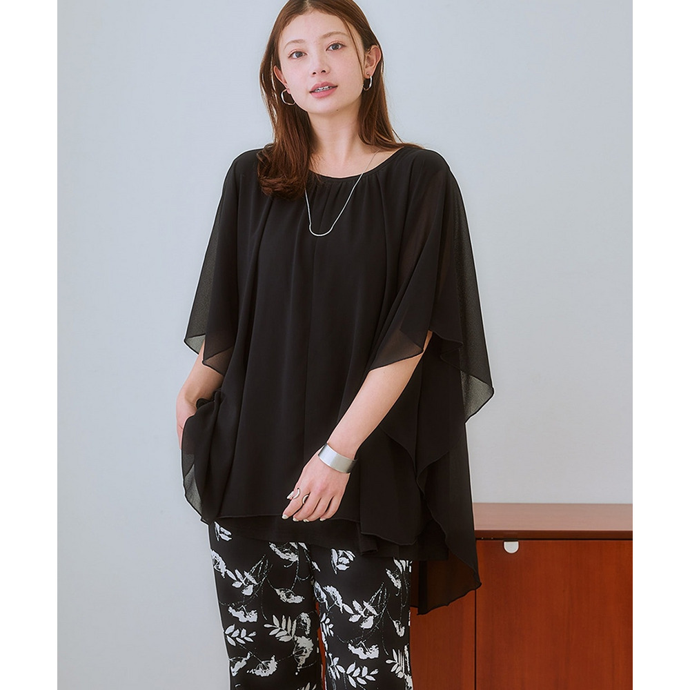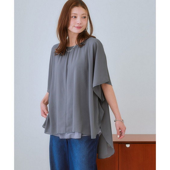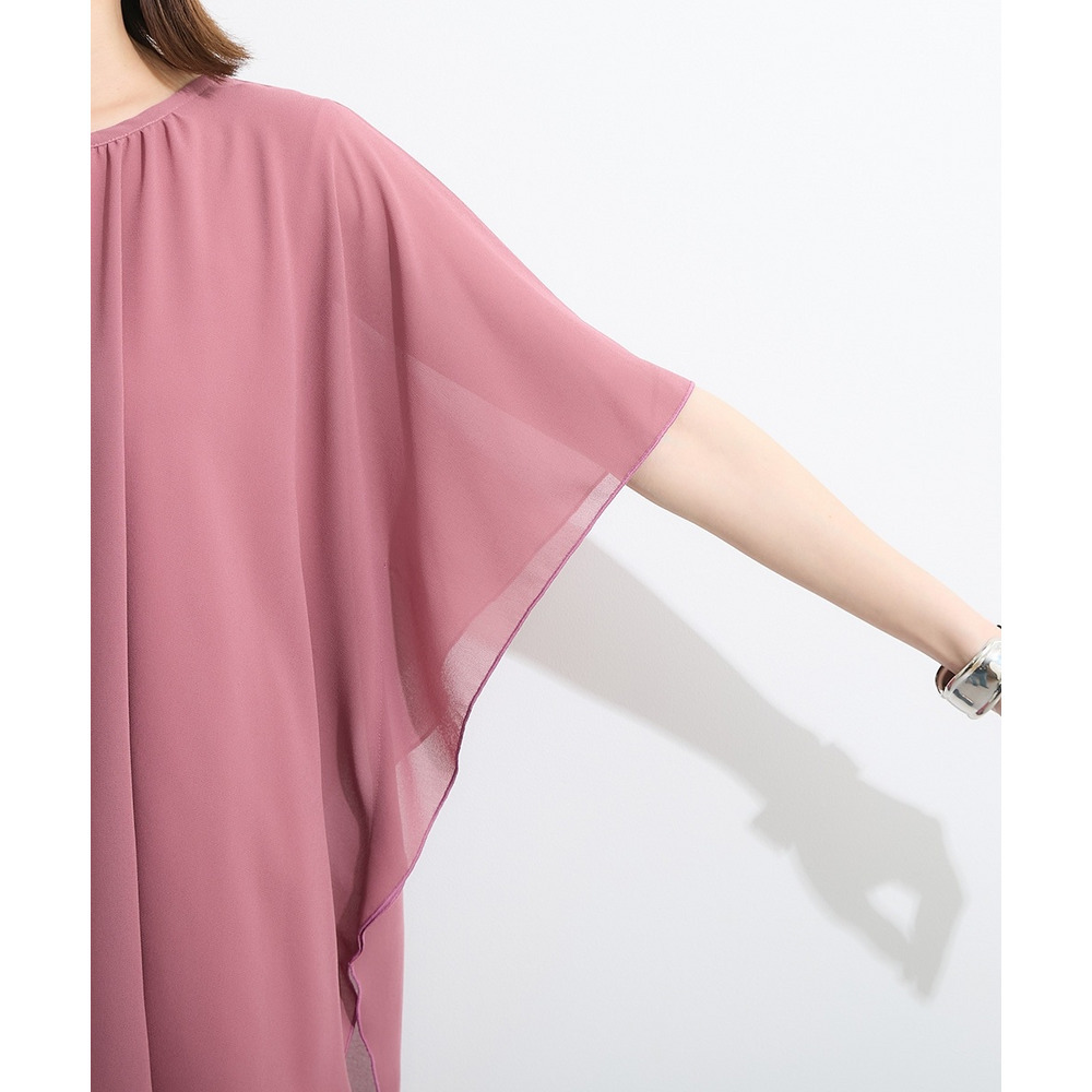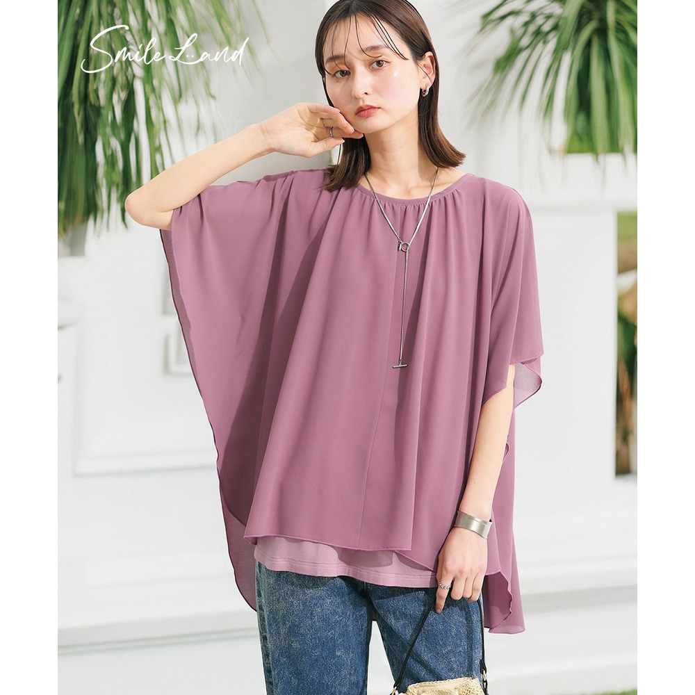 | 素材 | 品質=表側:ポリエステル100% 裏側:レーヨン94%・ポリウレタン6% 着丈前後差有 ドルマンスリーブのためゆったりとしたシルエットとなっております。“”透け感:透ける ※色によって透け感が異なる場合があります。 淡色カラーはベージュ系インナー着用をおすすめします。 伸縮性:あり 生地の厚み:普通 光沢感:なし 裏地:なし ポケット:なし 季節:夏 シルエット:ゆったり |