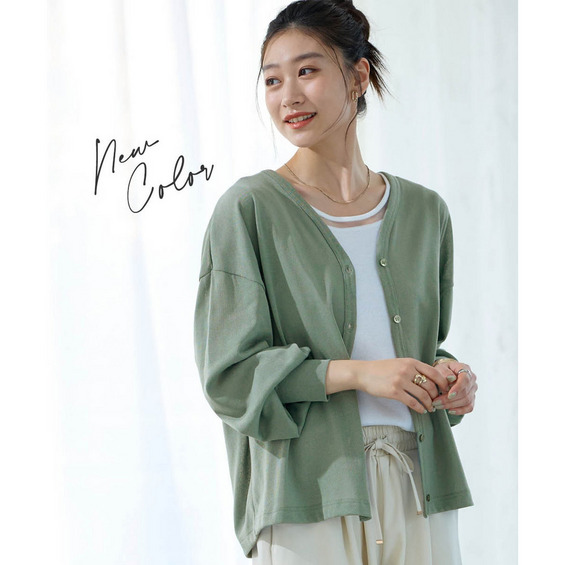 綿混うすカルゆるシルエットVネックカーディガン(UVカット・吸汗速乾・抗菌防臭・毛玉防止) 大きいサイズ