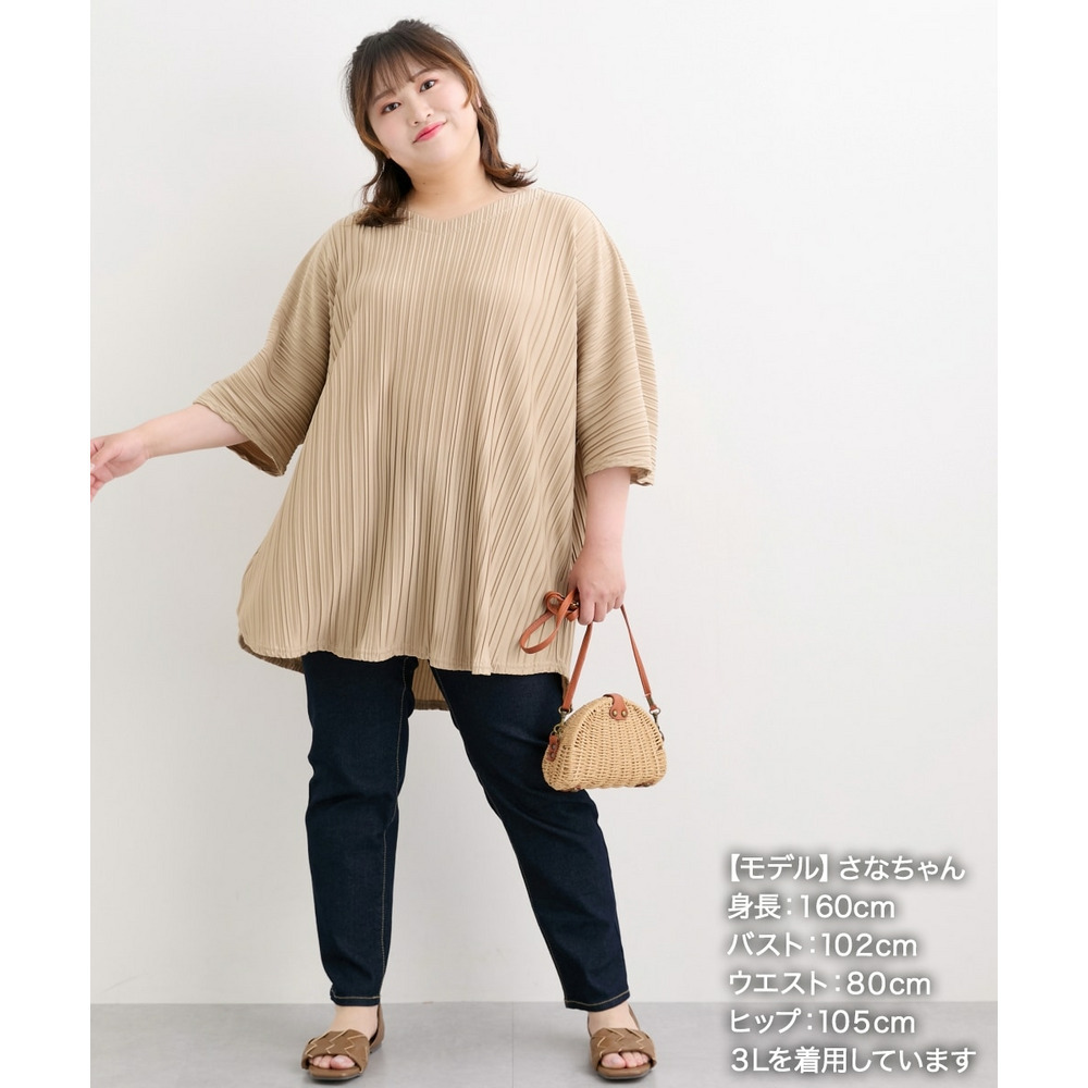 ランダムプリーツ5分袖カットソーVネックポンチョチュニック 大きいサイズ