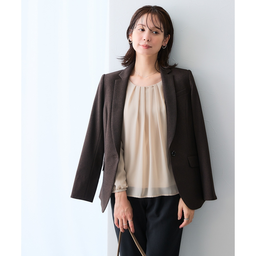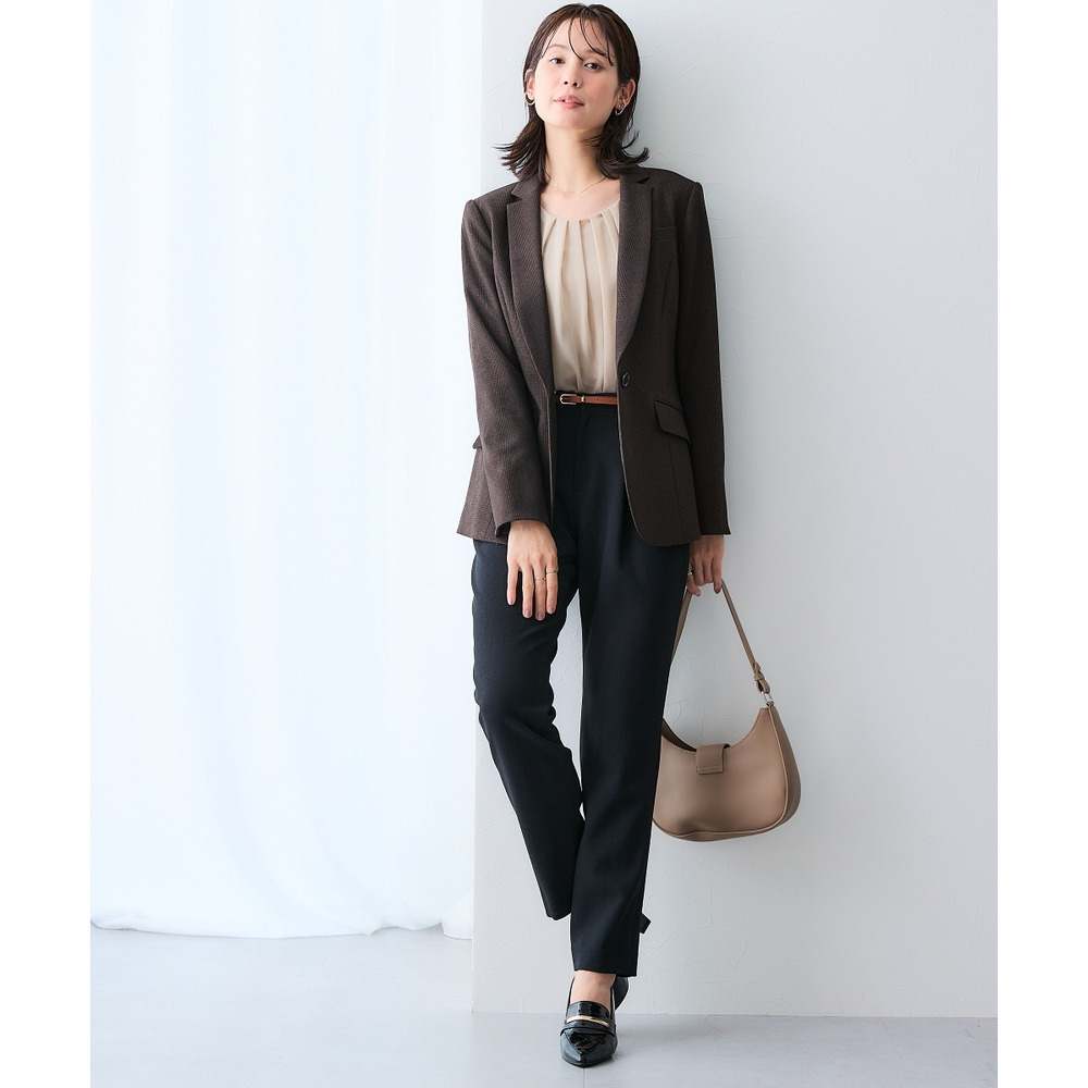 ・胸もとのタックを生かしたジャケットインがおすすめ。