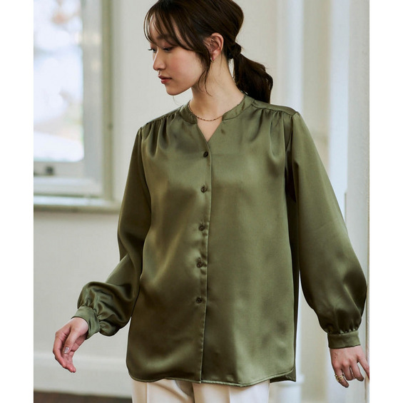 サテンスキッパーギャザーシャツ(防しわ) 大きいサイズ