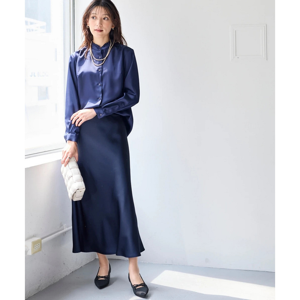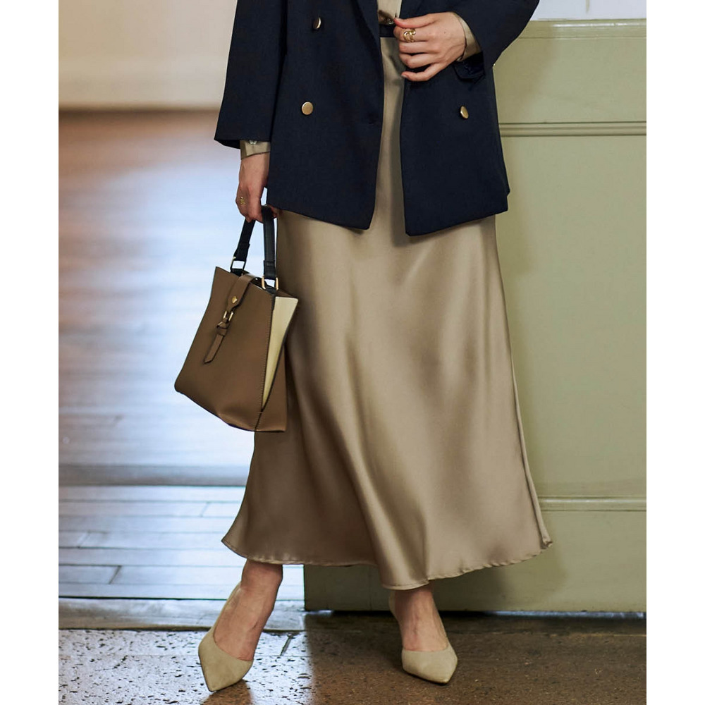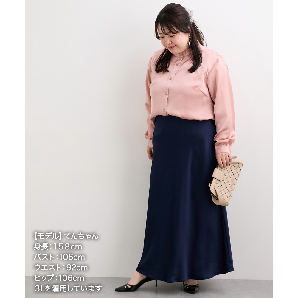 サテンAラインスカート(防しわ) 大きいサイズ