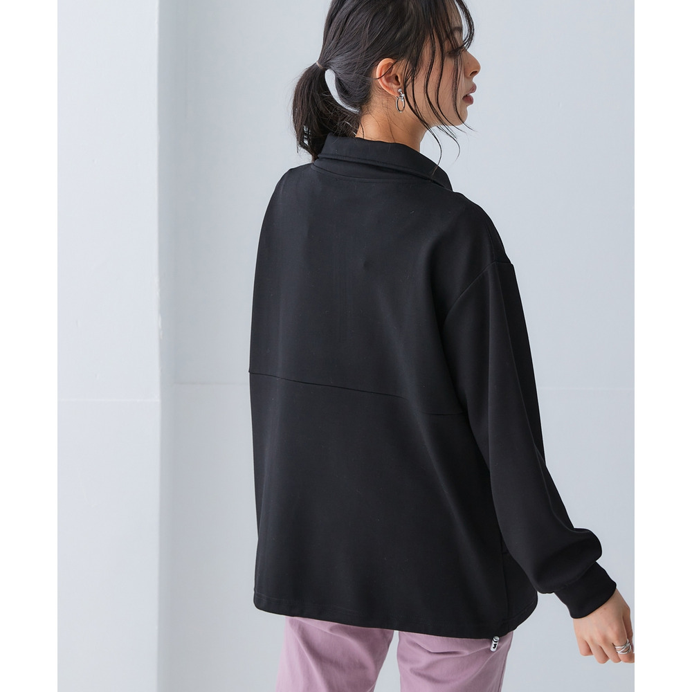 なめらかポンチ素材 ハーフジップ裾ドロストゆるシルエットプルオーバー(セットアップ可能) 大きいサイズ