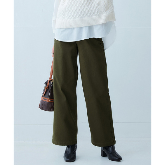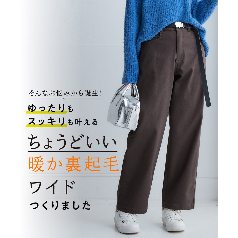 裏起毛ストレッチゆるフィットワイドパンツ 大きいサイズ
