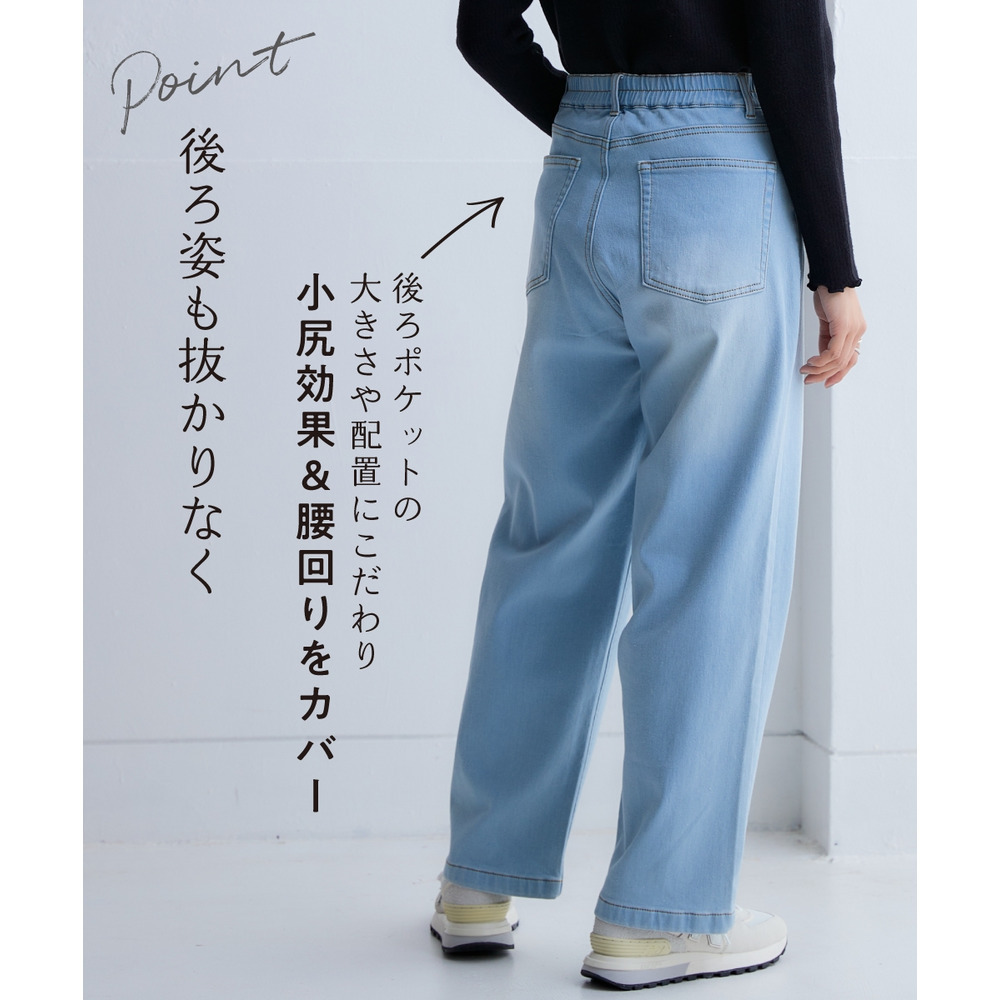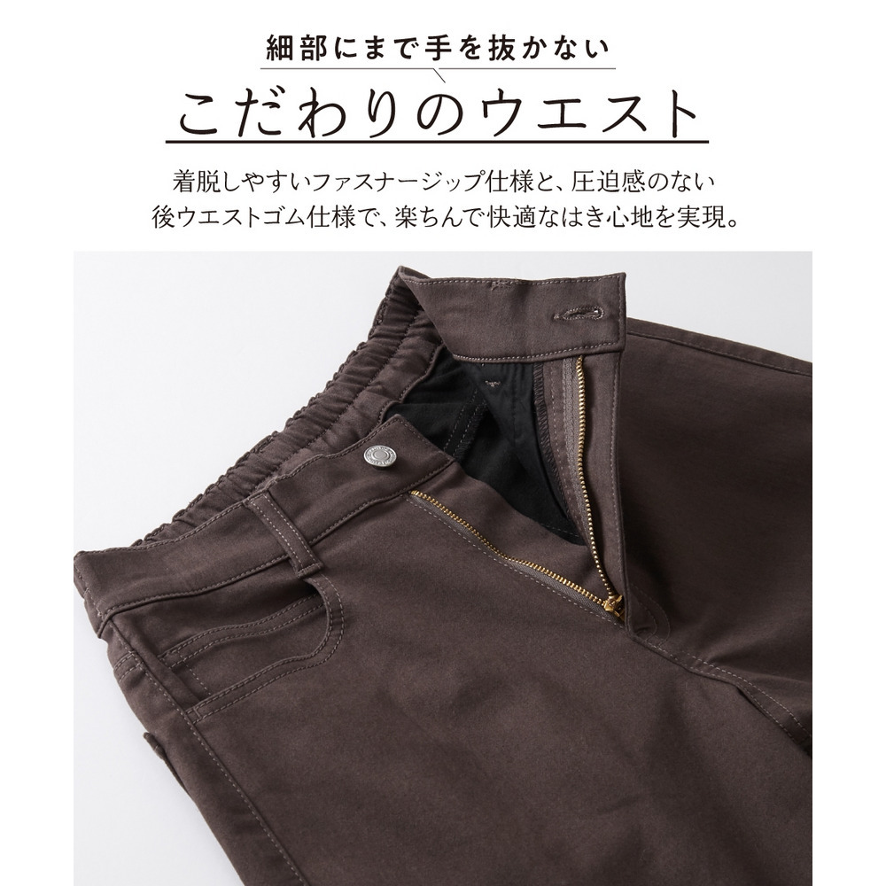 後ろウエストはゴム仕様なので、圧迫感が少なく、体型にやさしくフィットします。
