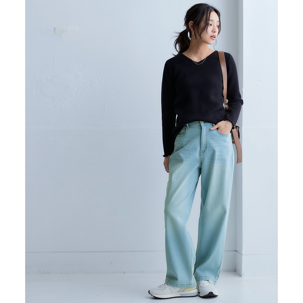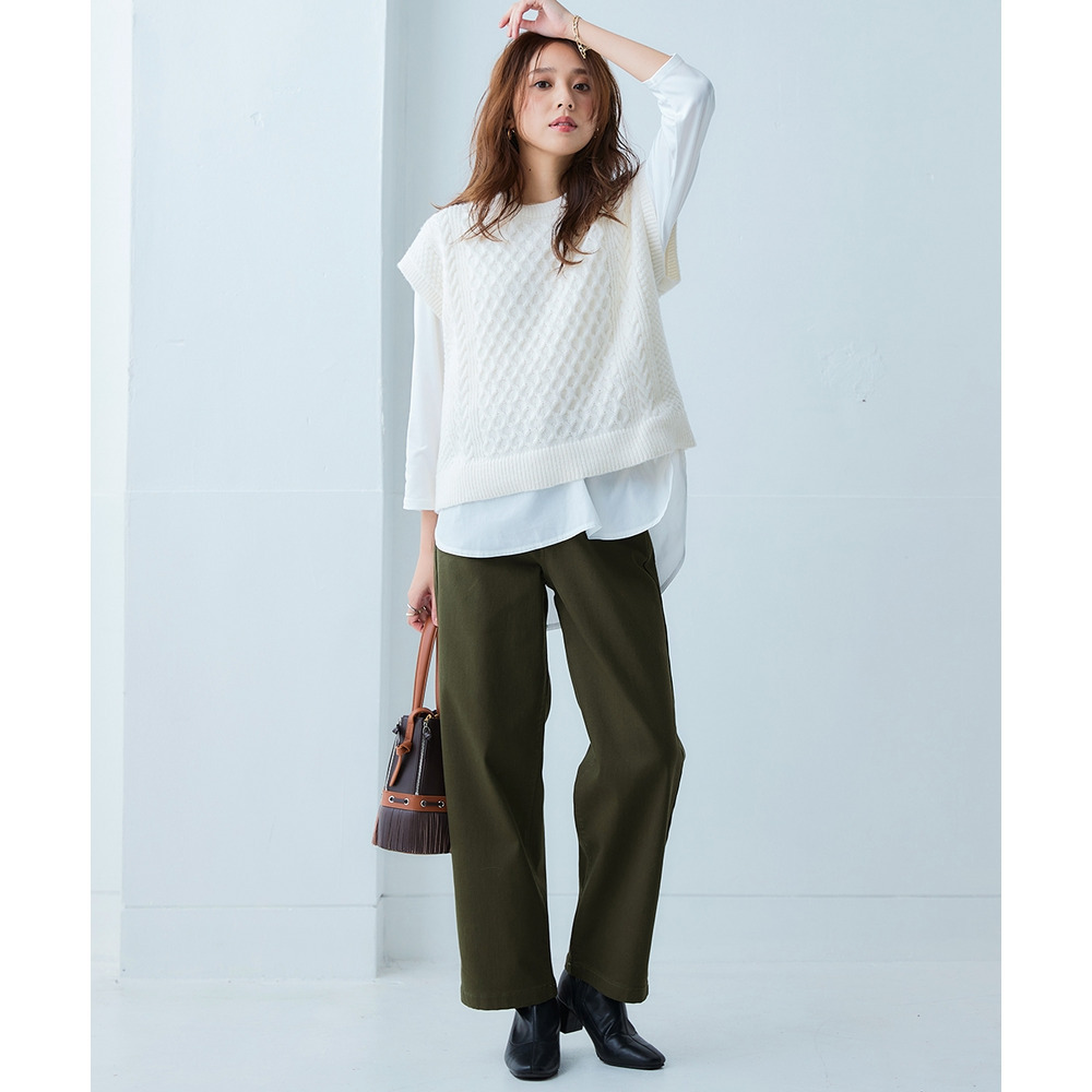 太すぎず細すぎず、ゆるやかに体のラインを拾わないシルエットで、気になる部分はしっかりカバーしながらも、すっきりと見える優秀デザイン。