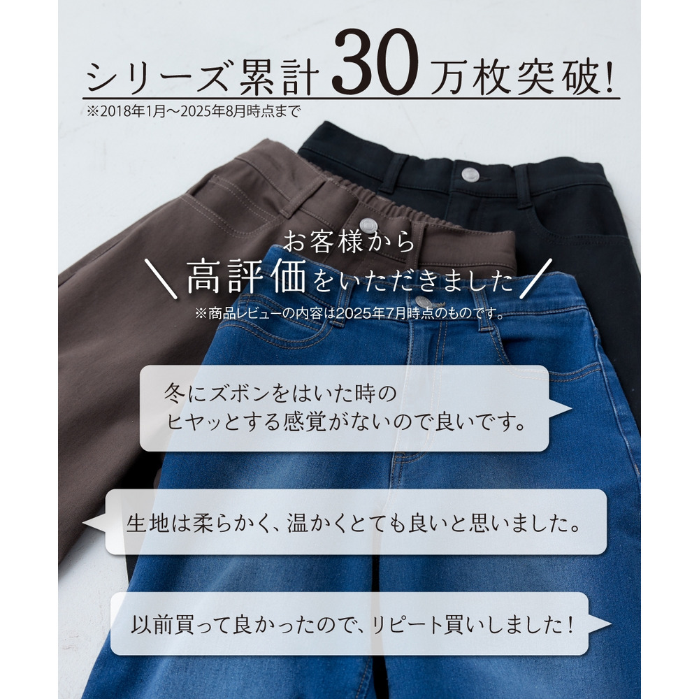 素材 | 品質=[デニム]綿61%・ポリエステル26%・再生繊維(セルロース)11%・ポリウレタン2% [ツイル]綿64%・ポリエステル35%・ポリウレタン1% 透け感なし 伸縮性:あり 生地の厚み:普通 光沢感:なし 裏地:なし ポケット:両脇・後ろ2つ ウエスト:後ゴム 季節:冬向き シルエット:ぴったり |