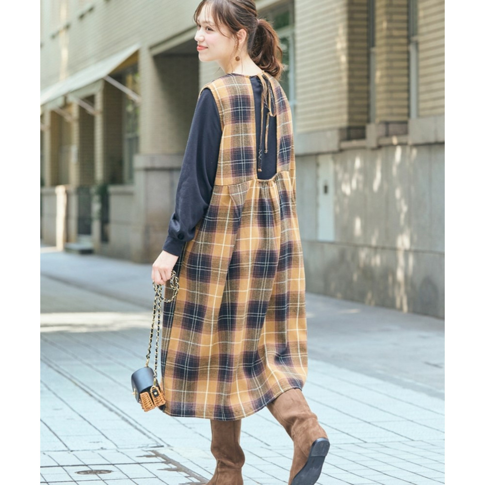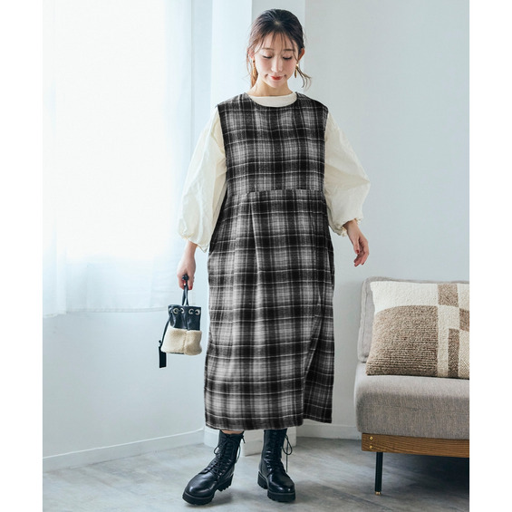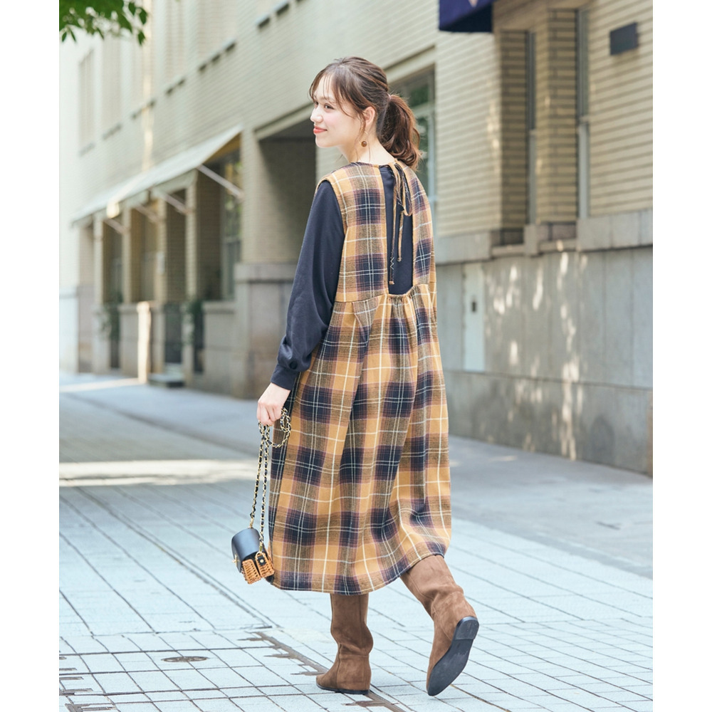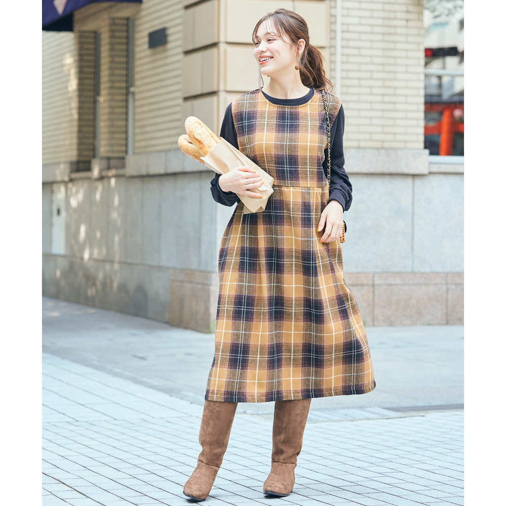このジャンパースカートは、インナー次第で様々な表情を見せてくれる万能アイテムです。