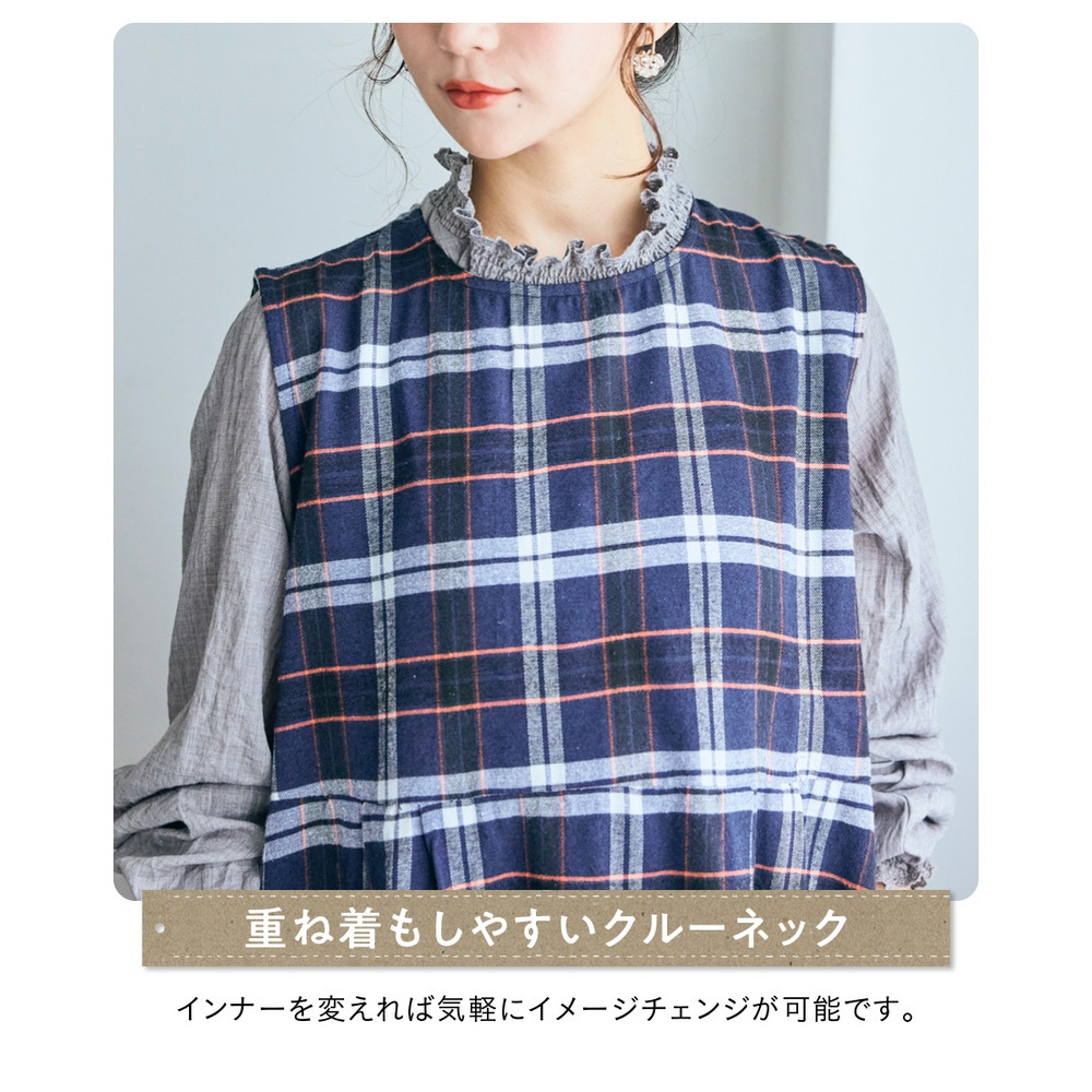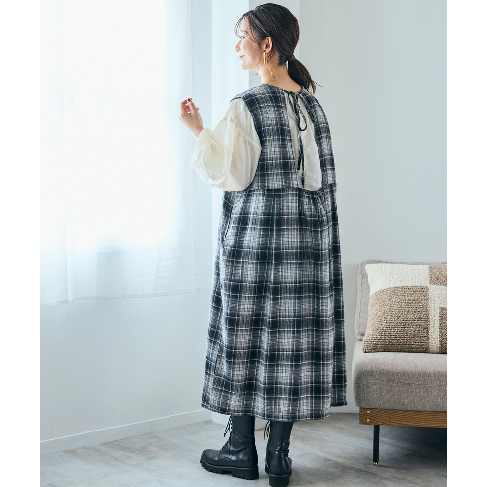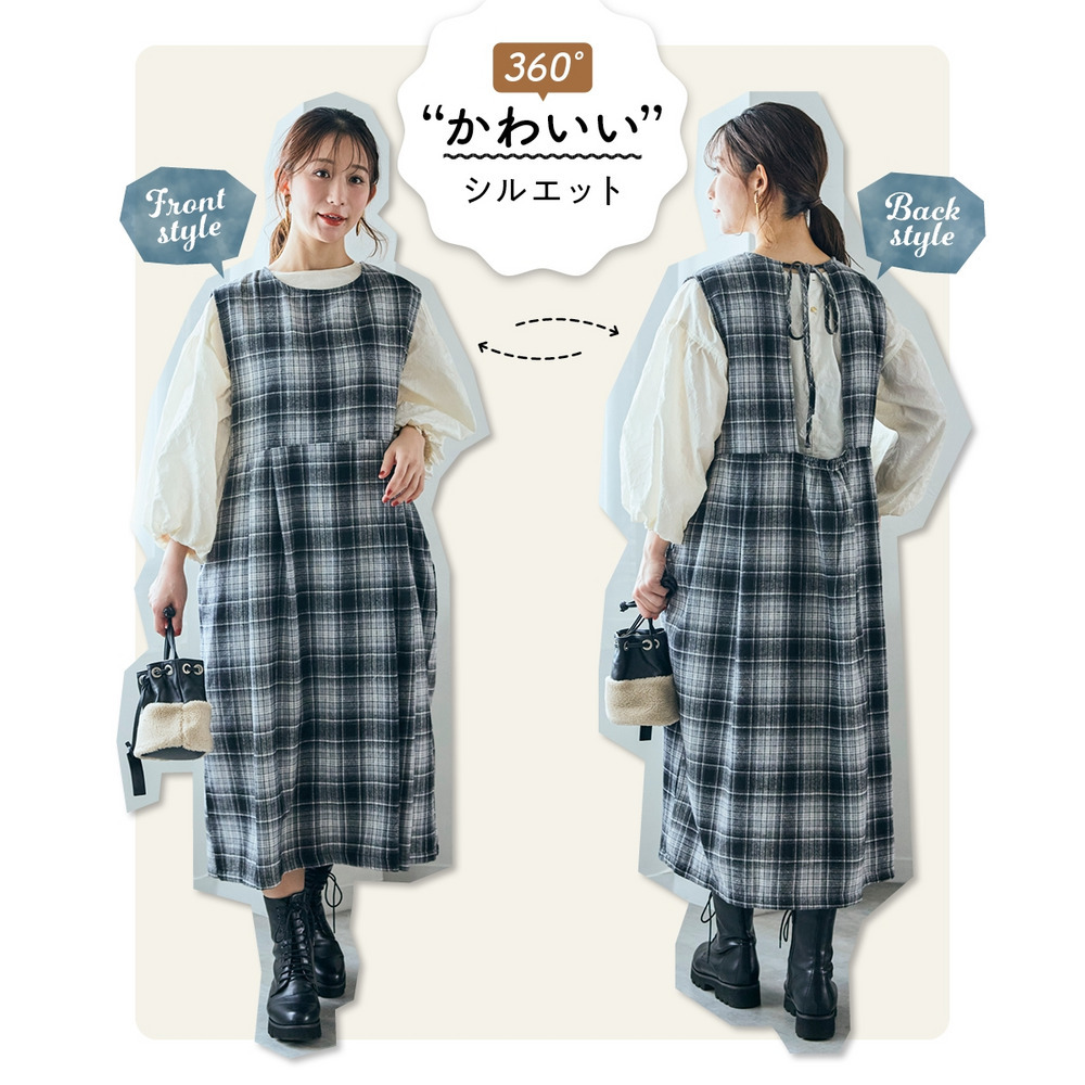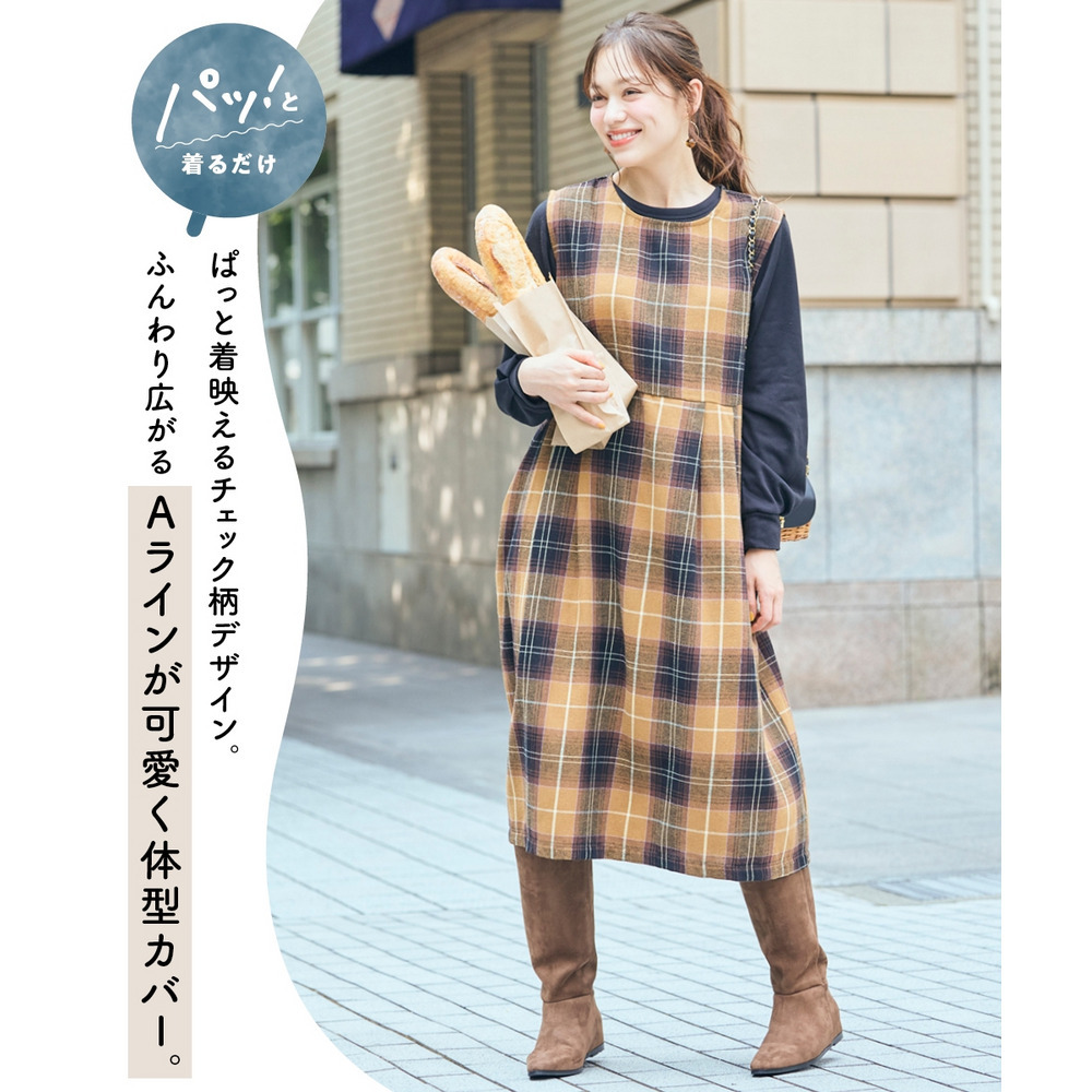 起毛チェックフレンチスリーブジャンパースカート 大きいサイズ