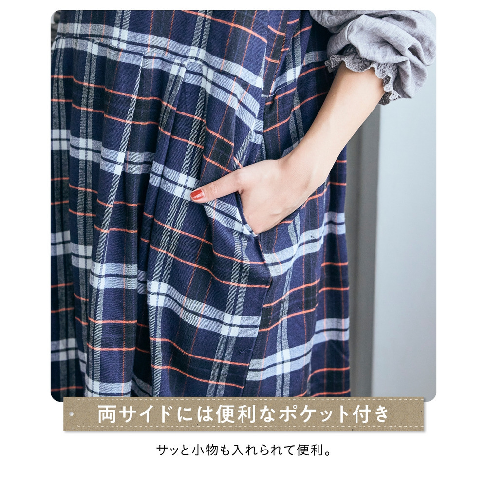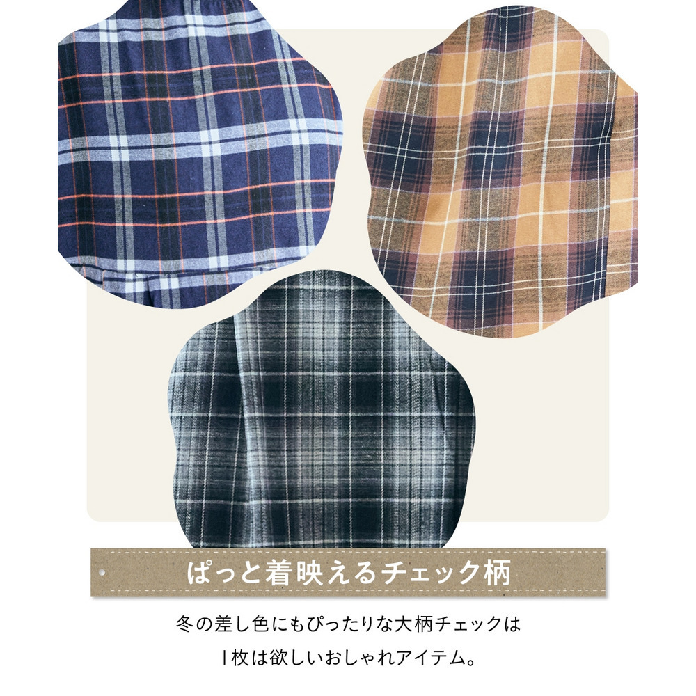 カジュアルながらも上品さを忘れないチェック柄は、普段使いはもちろん、ちょっとしたお出かけにもぴったり。