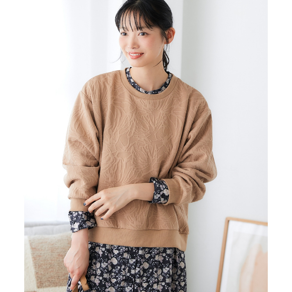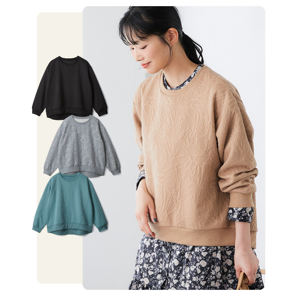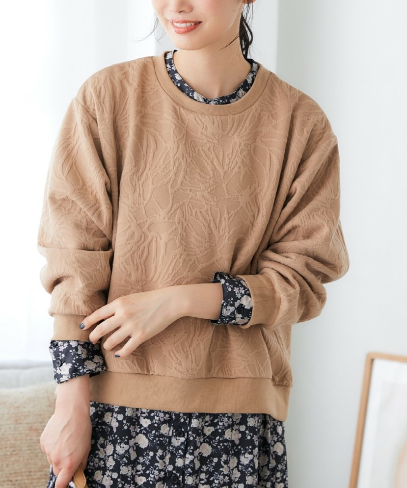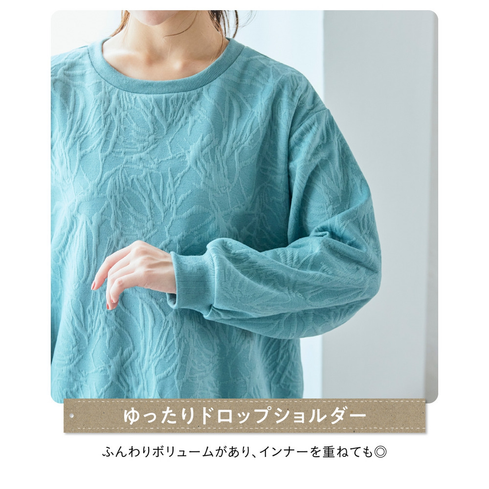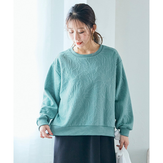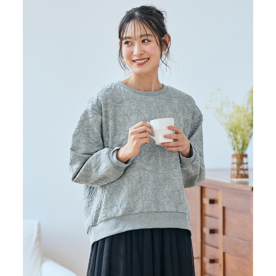 このプルオーバーは、立体感のあるふくれフラワージャガード生地が最大の魅力。