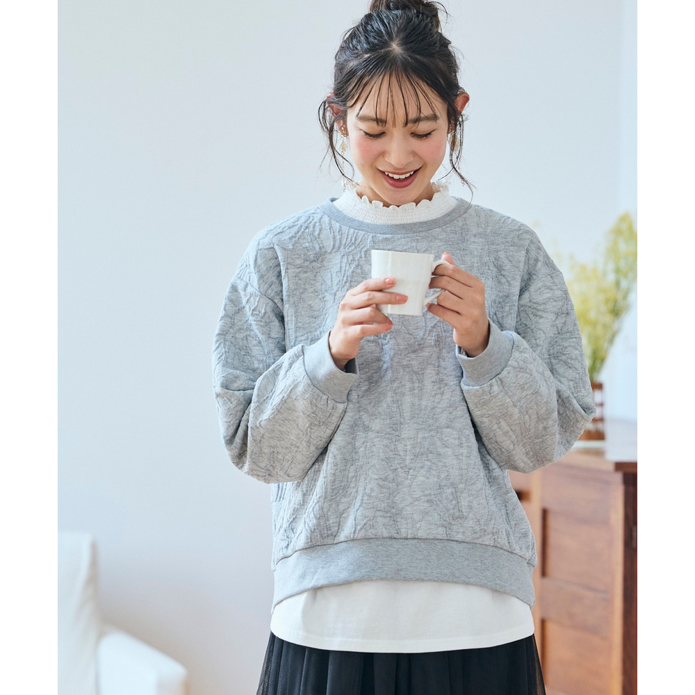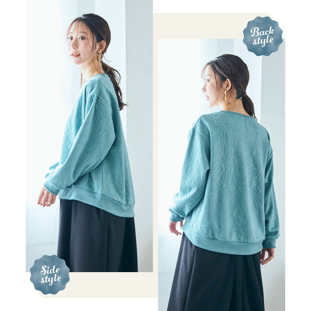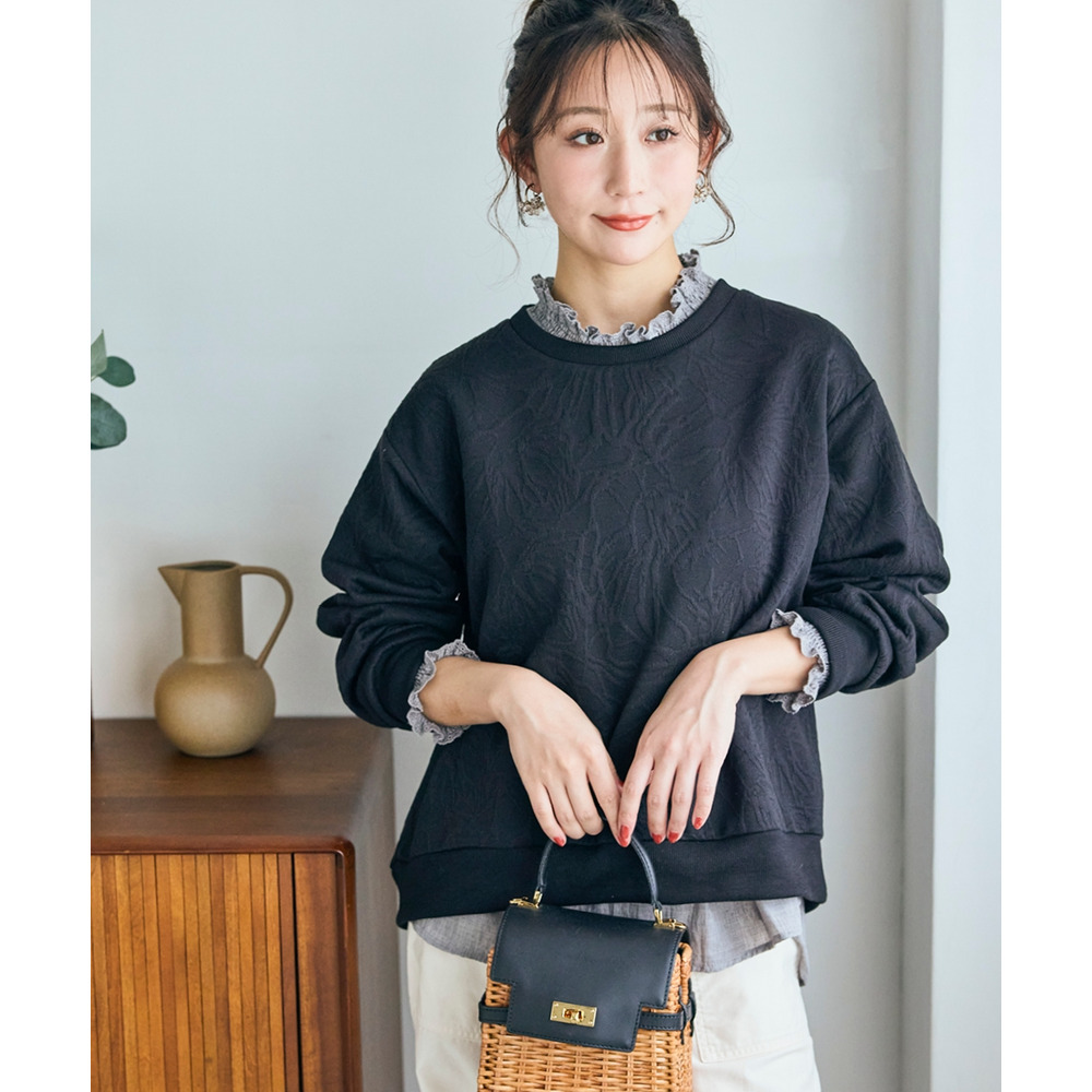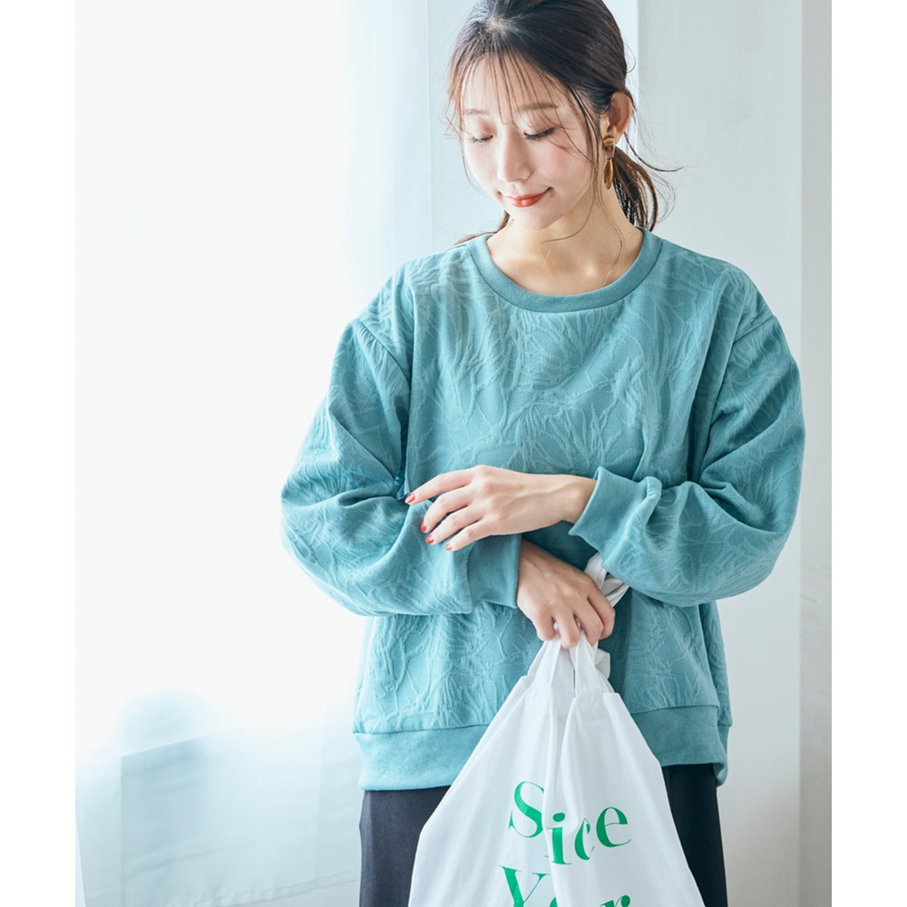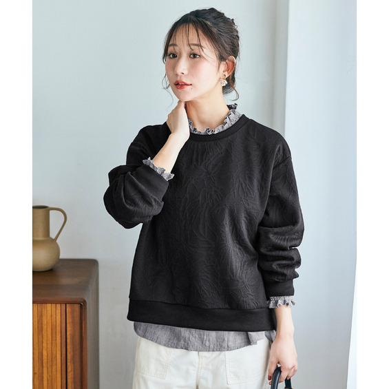 このプルオーバーは、立体感のあるふくれフラワージャガード生地が最大の魅力。