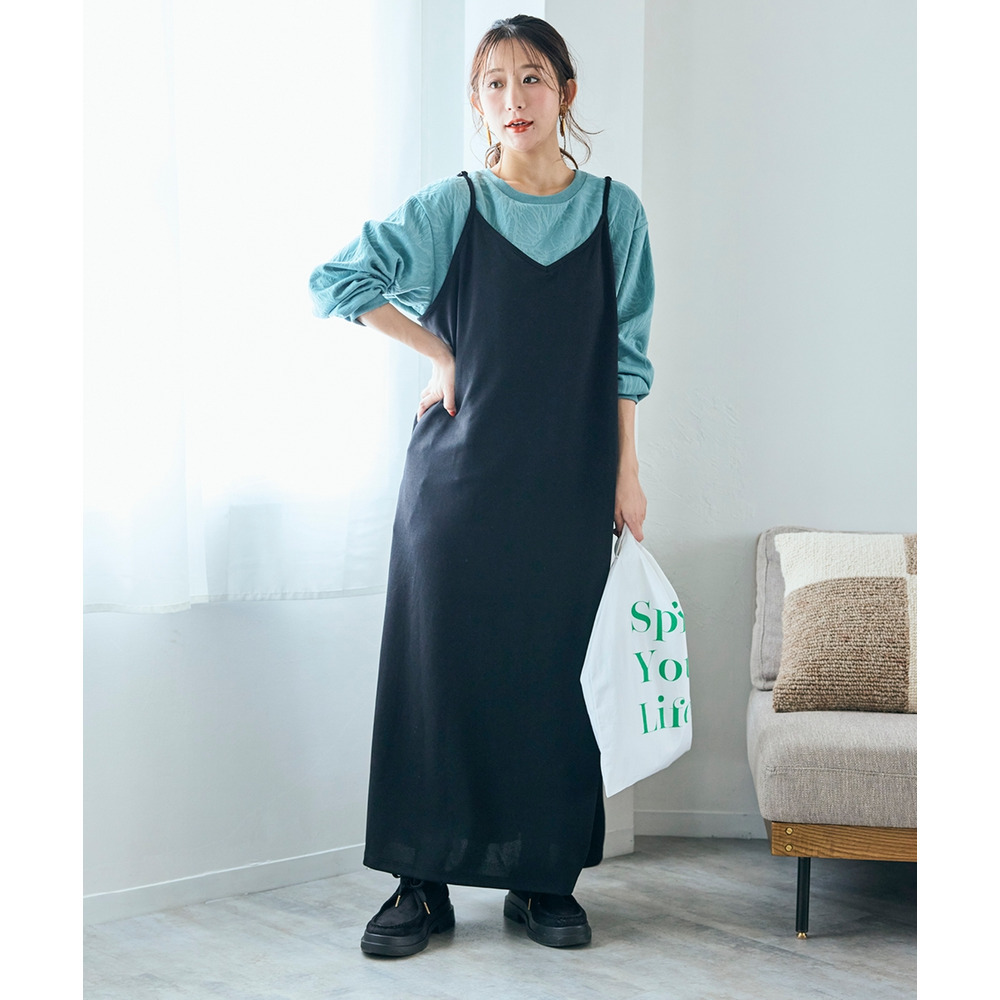 肩のラインを拾わないドロップショルダーデザインは、女性らしい華奢見え効果も期待できます。
