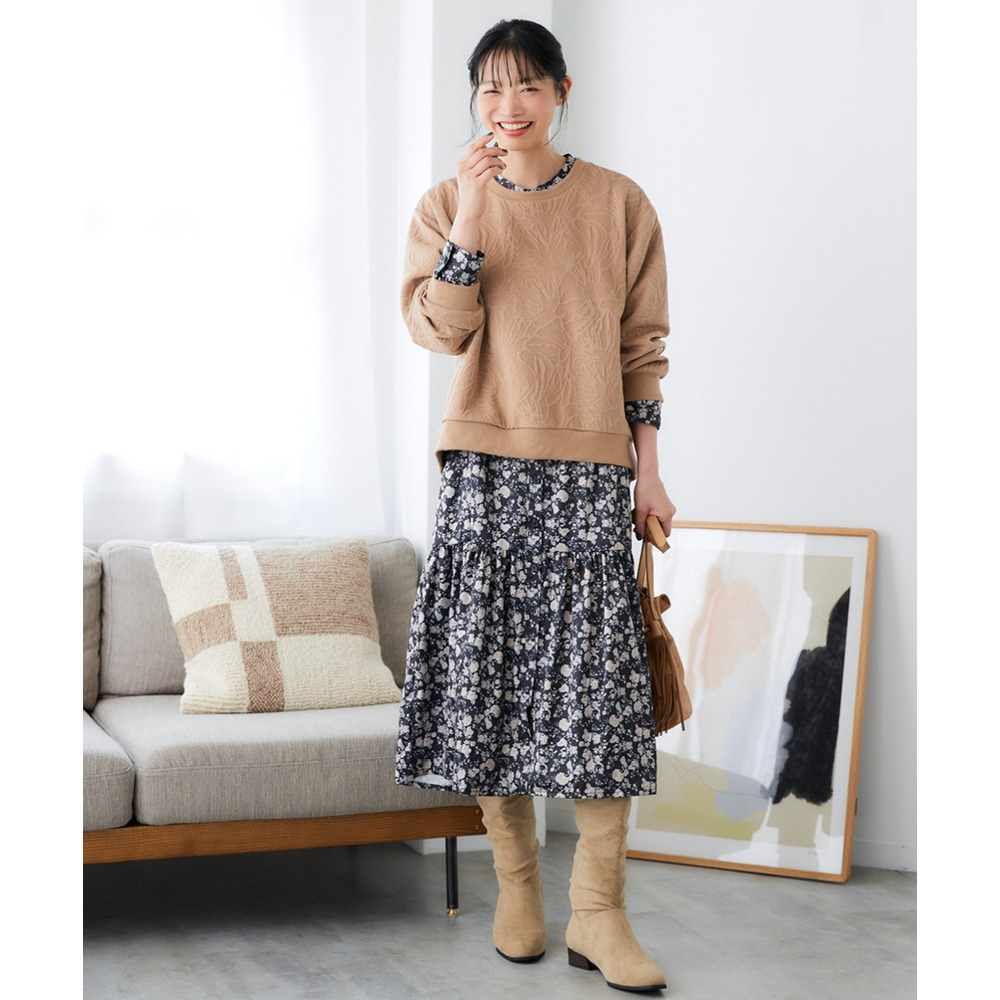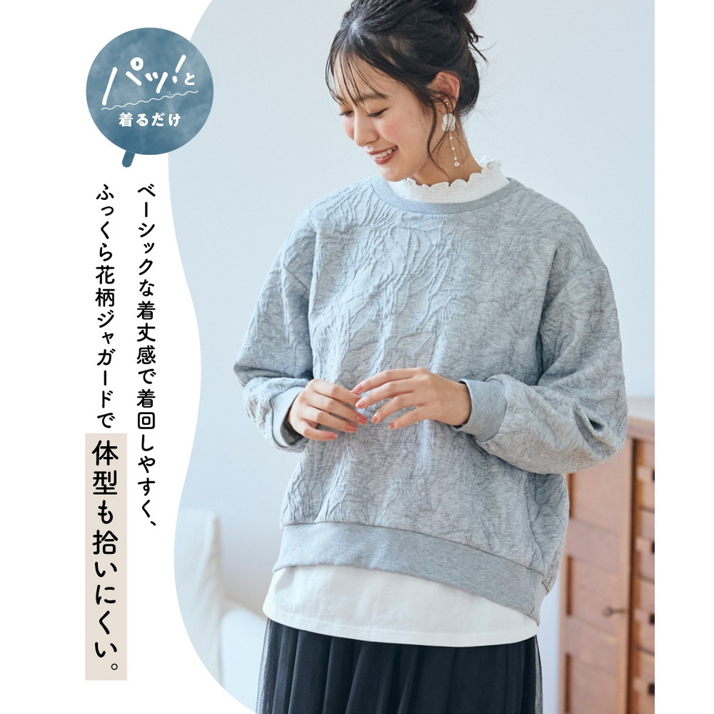 ふくれフラワージャガードゆるシルエットプルオーバー 大きいサイズ