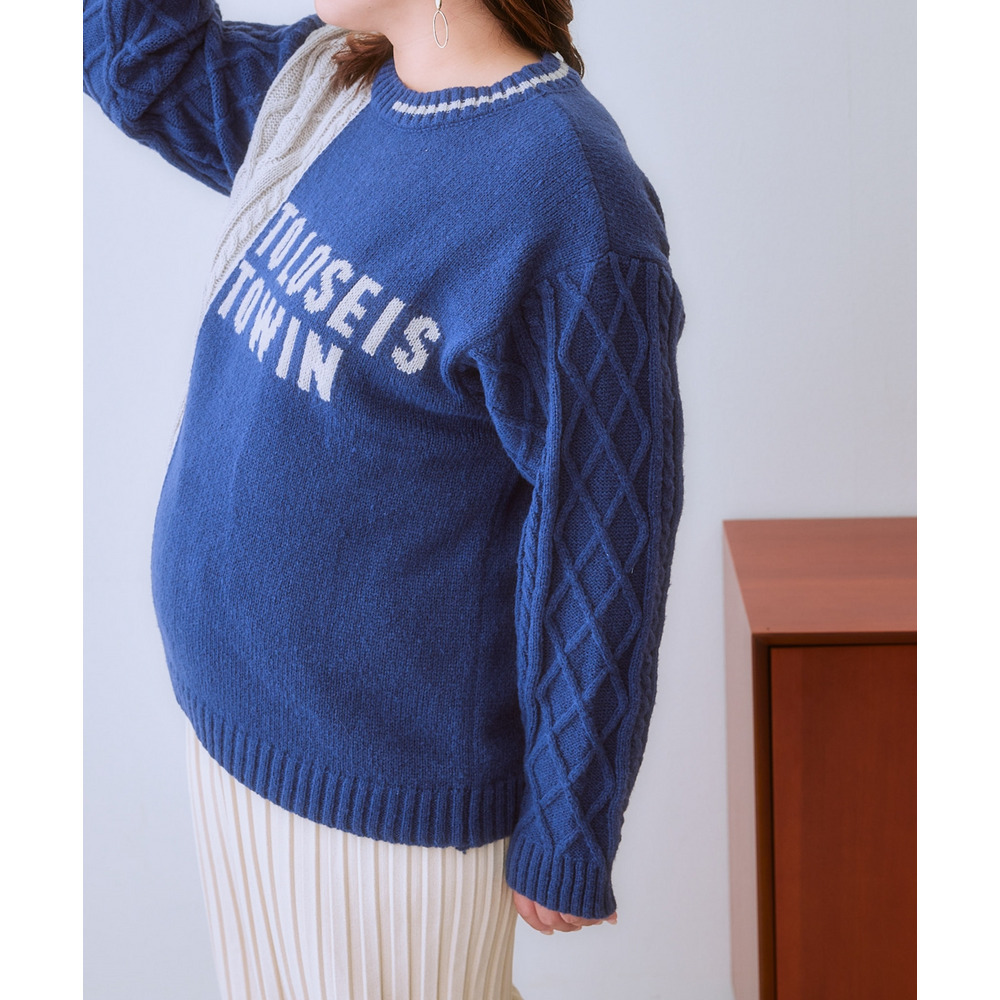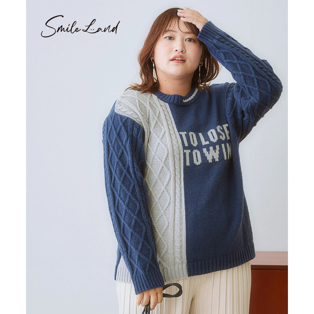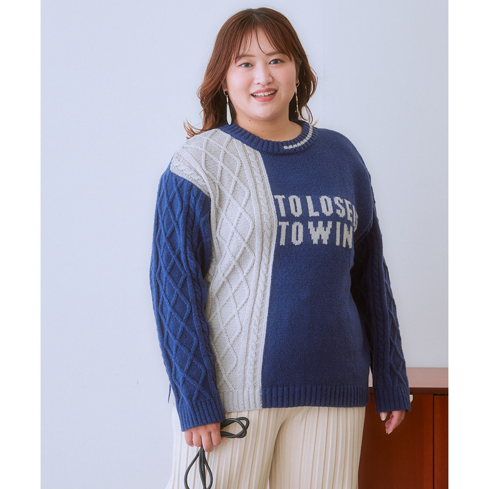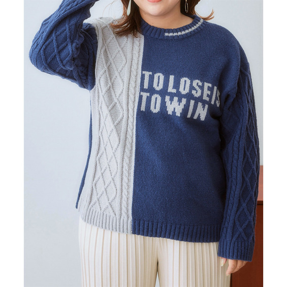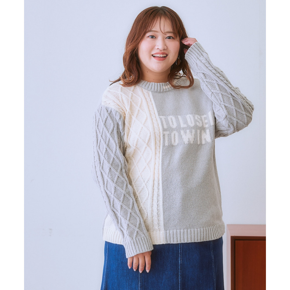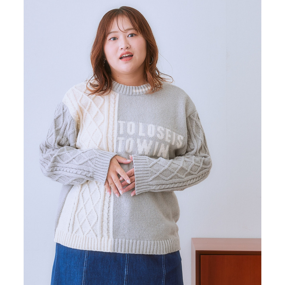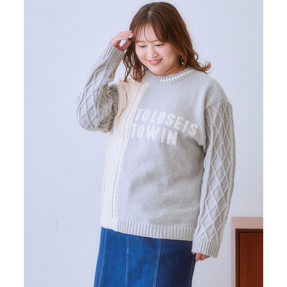 ゆるシルエットケーブルデザインロゴニットプルオーバー 大きいサイズ