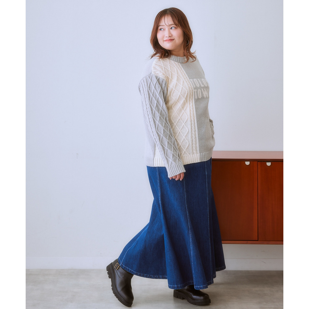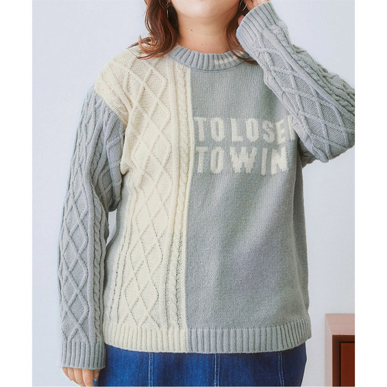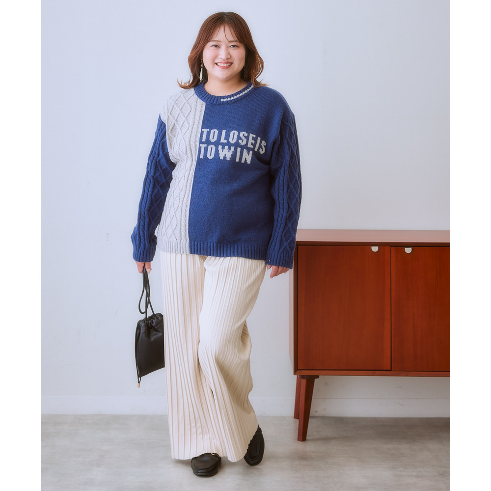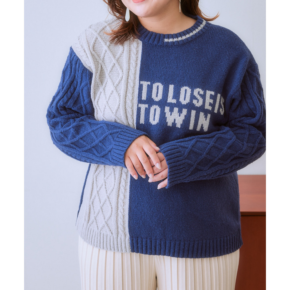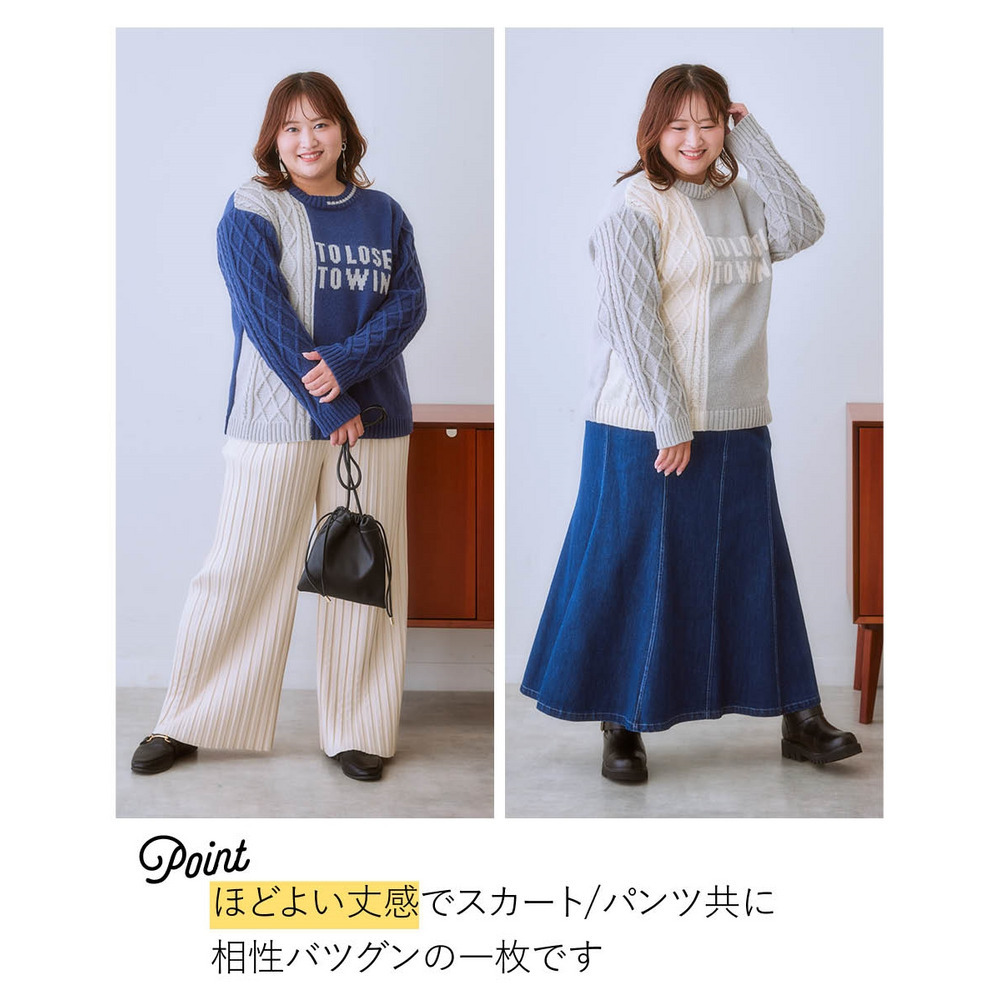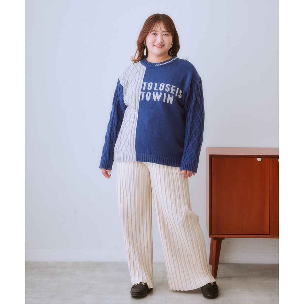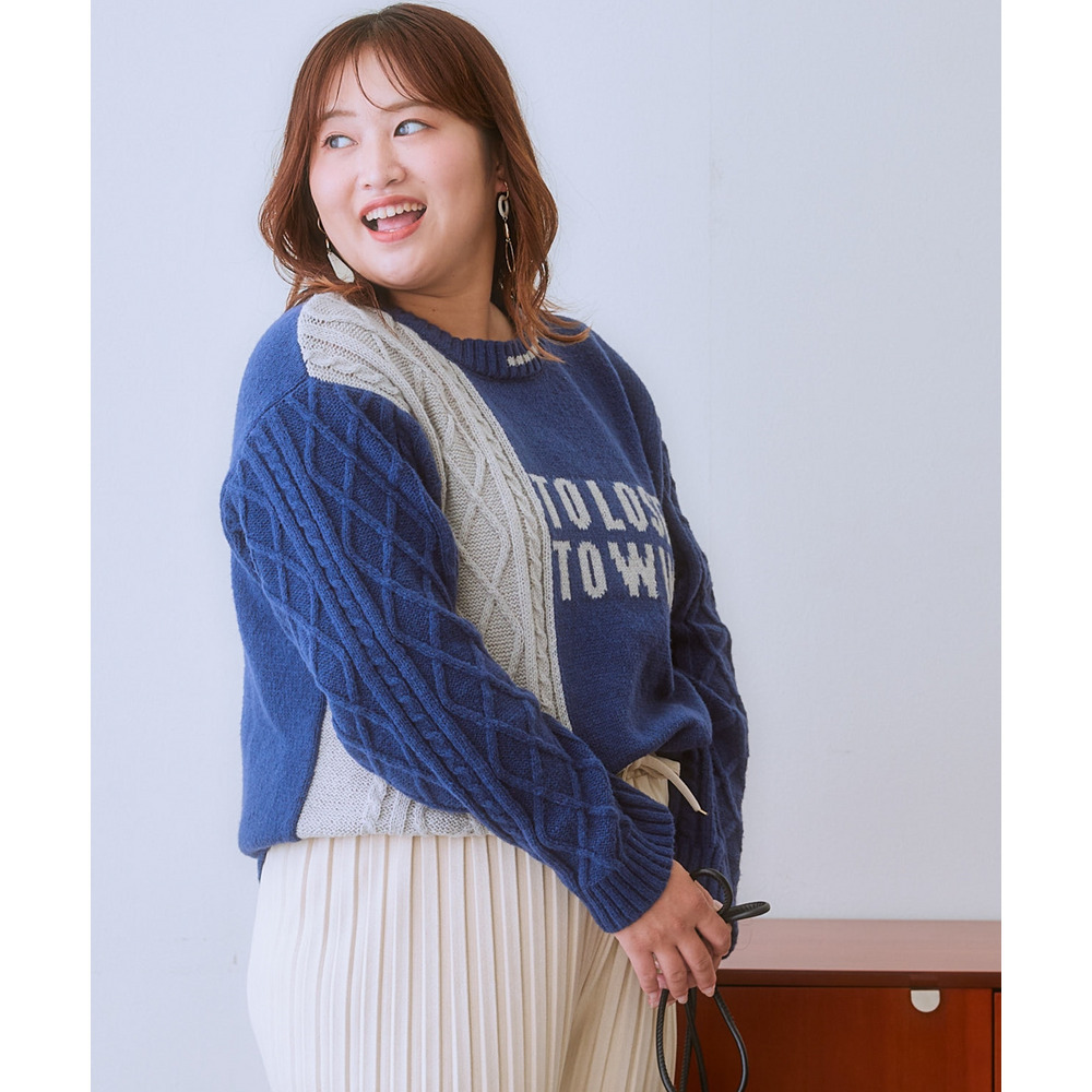 ゆるシルエットケーブルデザインロゴニットプルオーバー 大きいサイズ