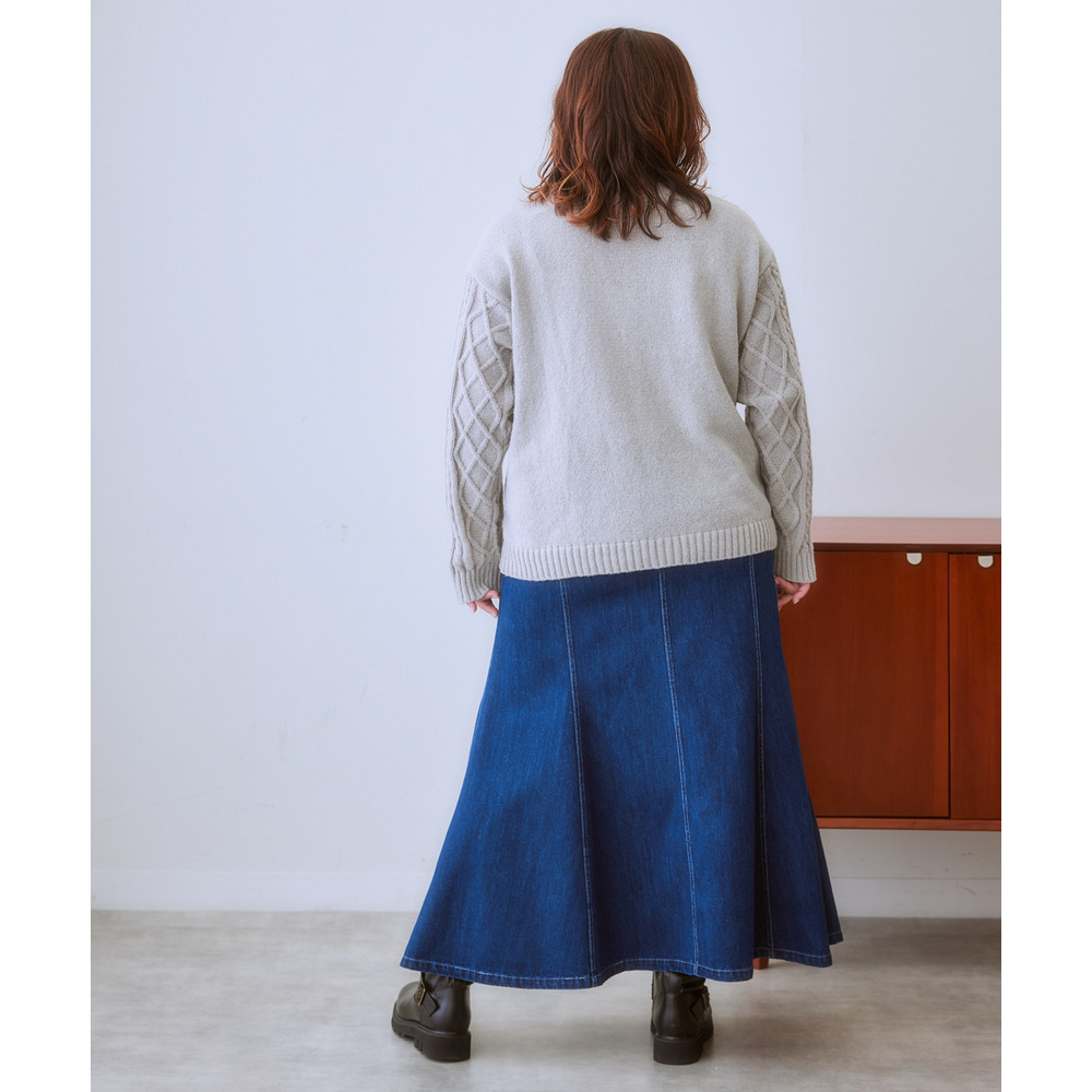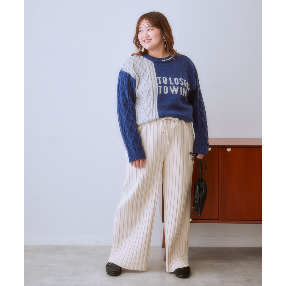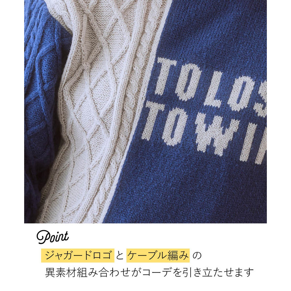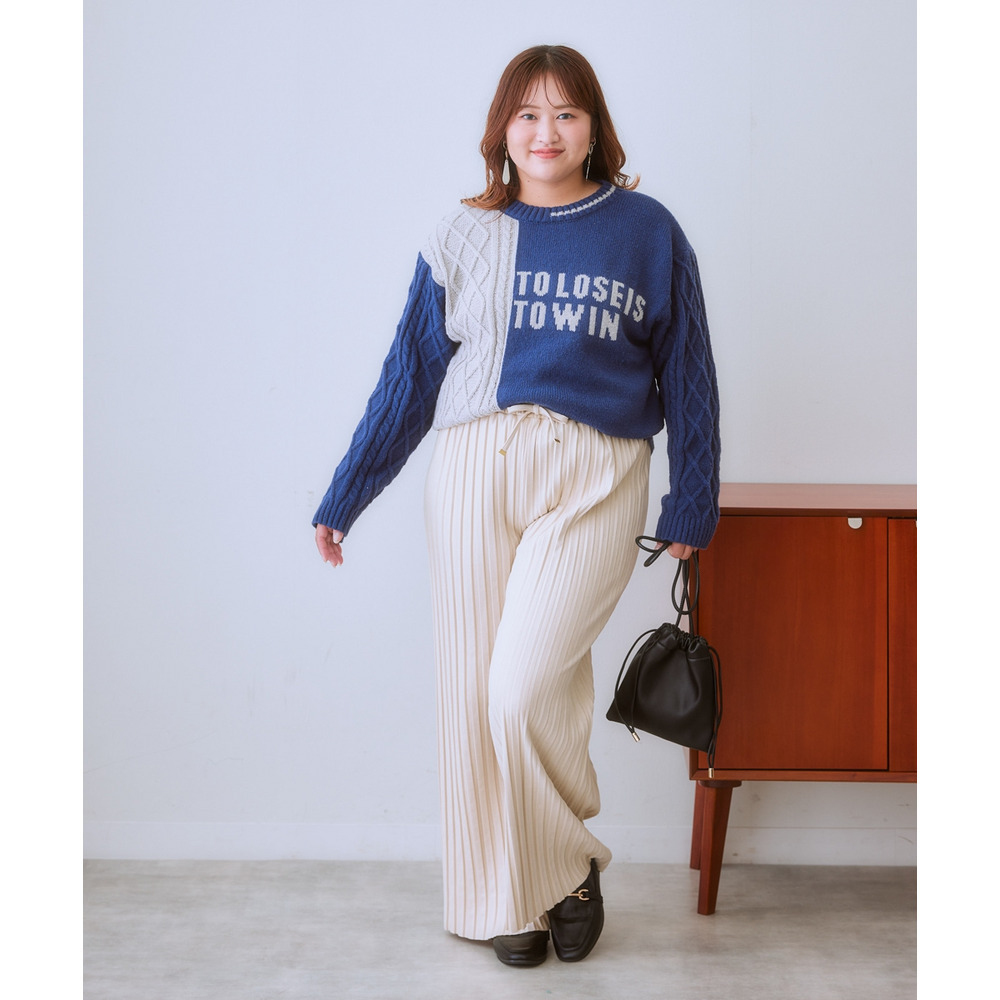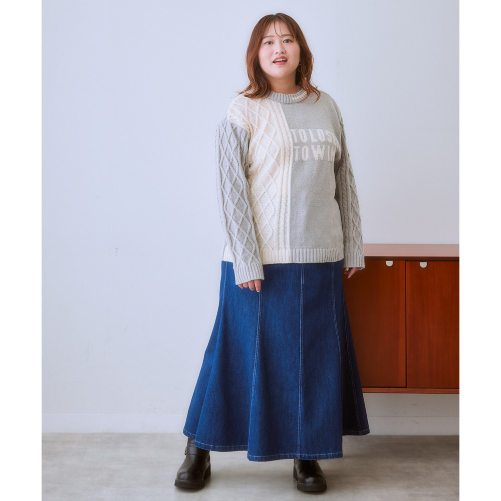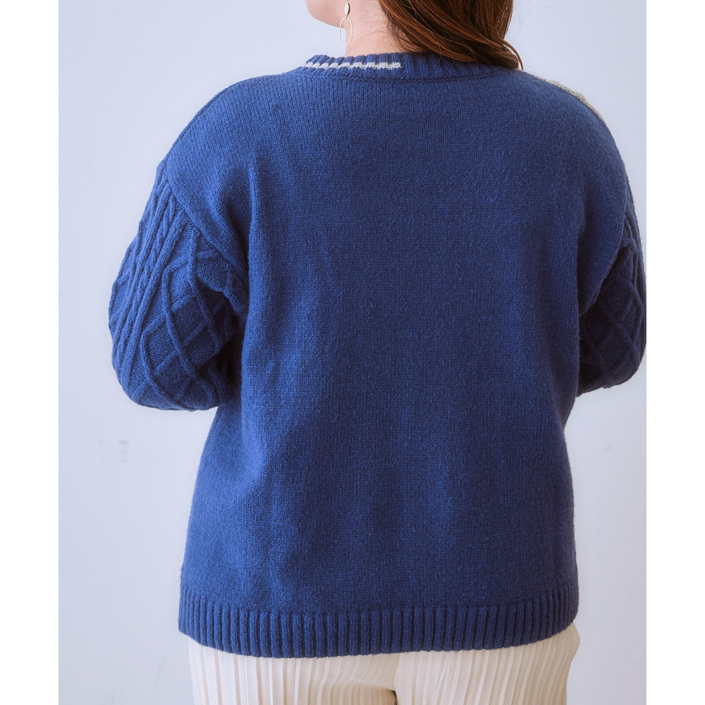 ゆるシルエットケーブルデザインロゴニットプルオーバー 大きいサイズ