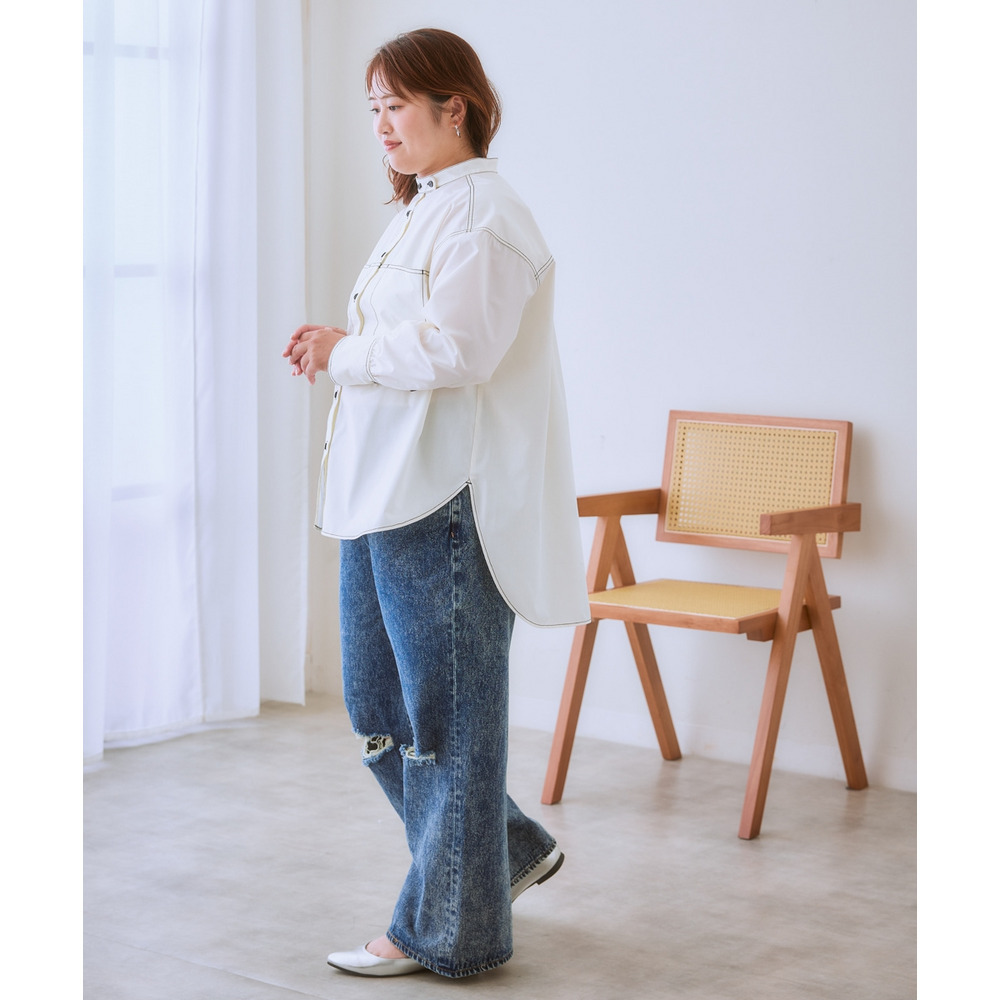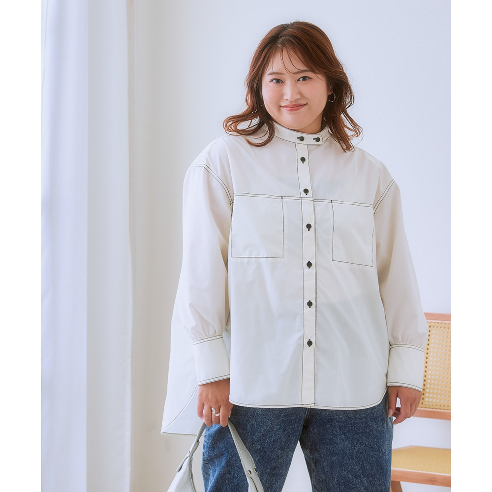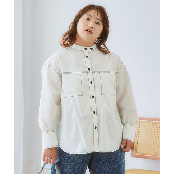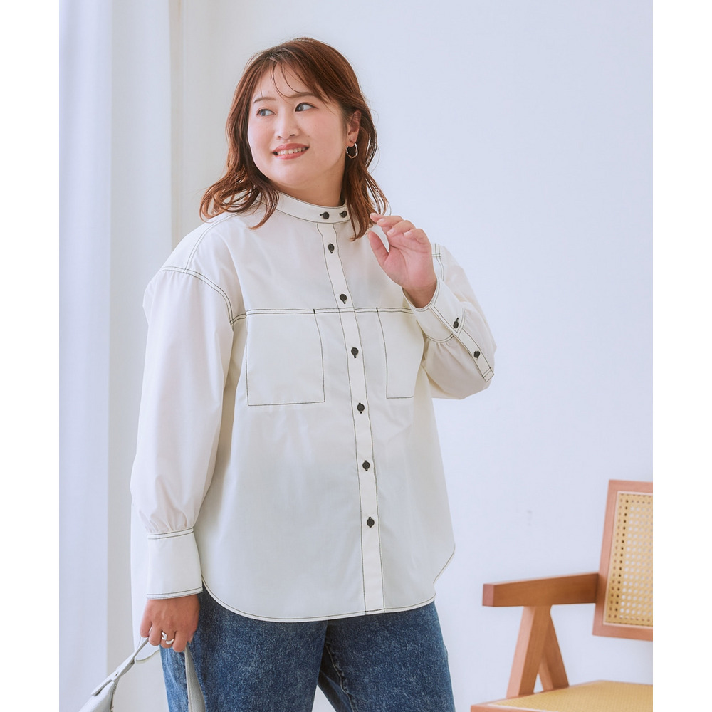 ゆるシルエット配色ステッチシャツ 大きいサイズ