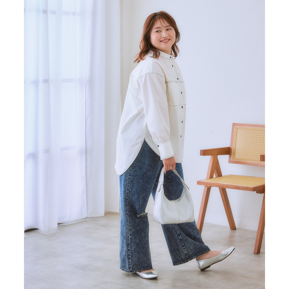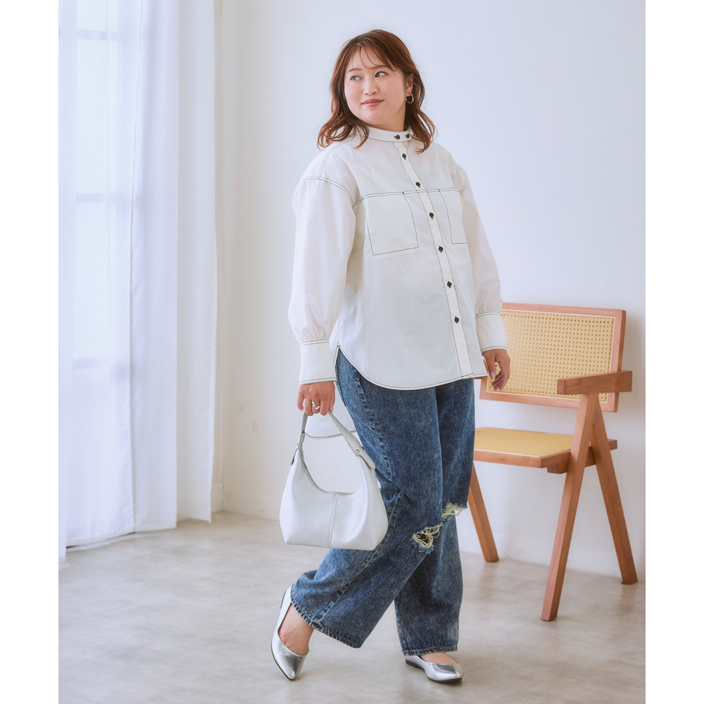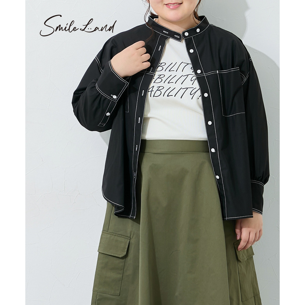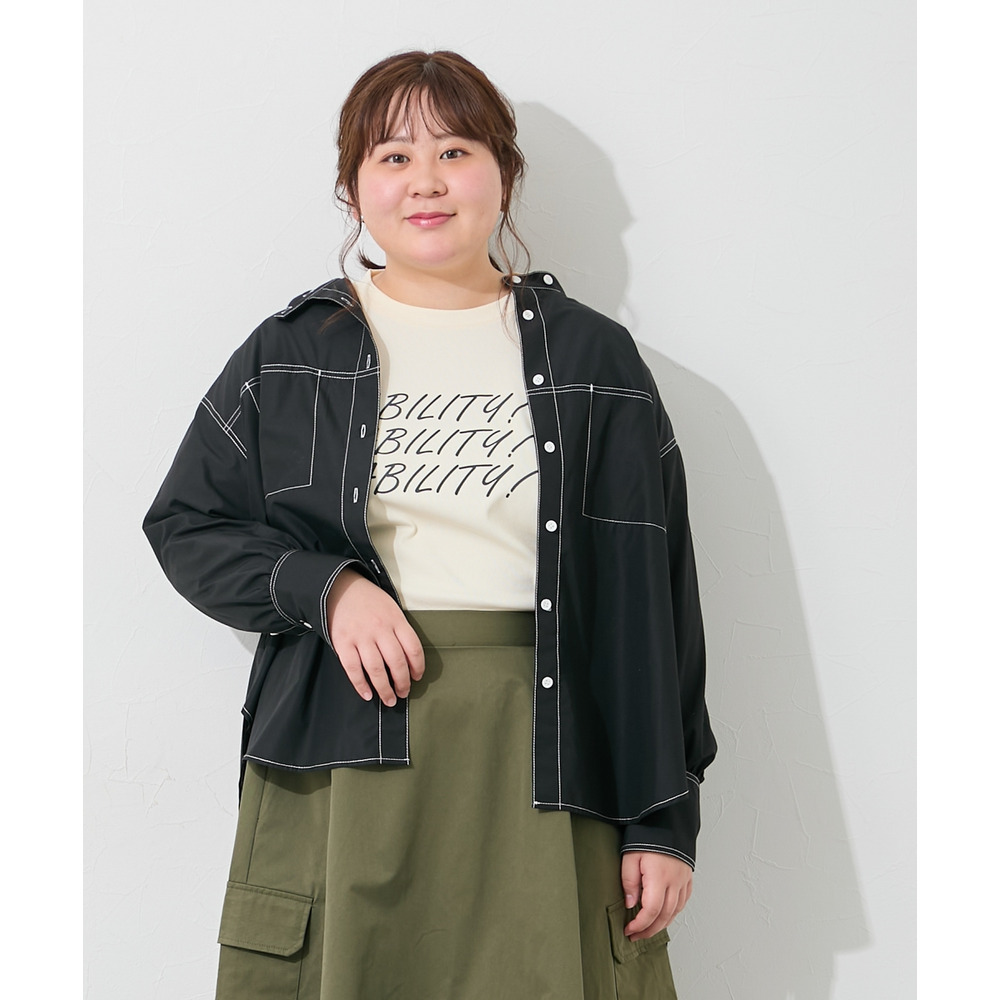 ゆるシルエット配色ステッチシャツ 大きいサイズ