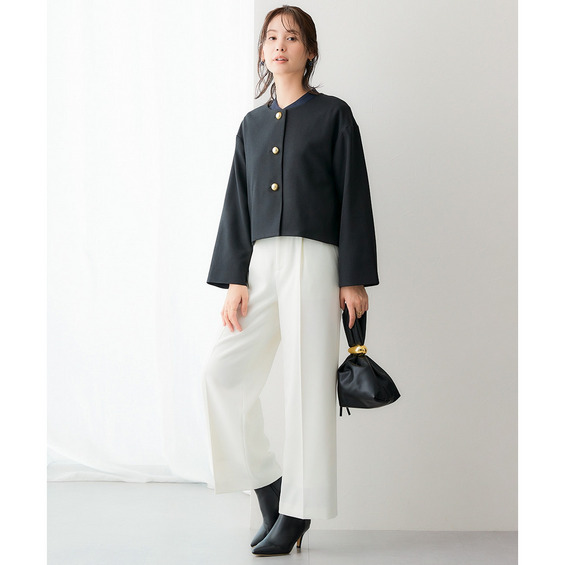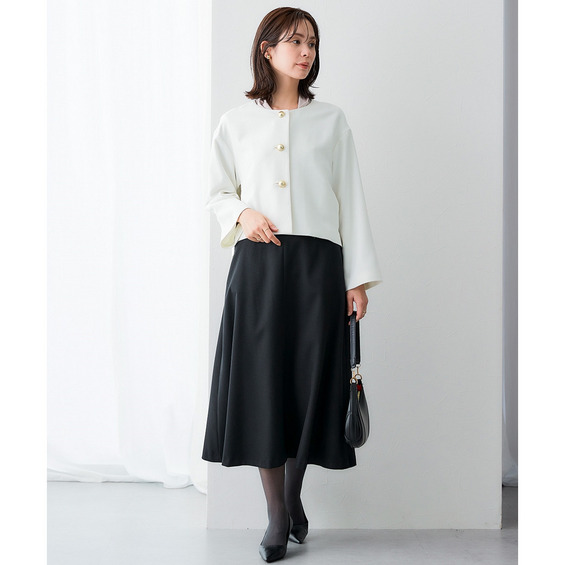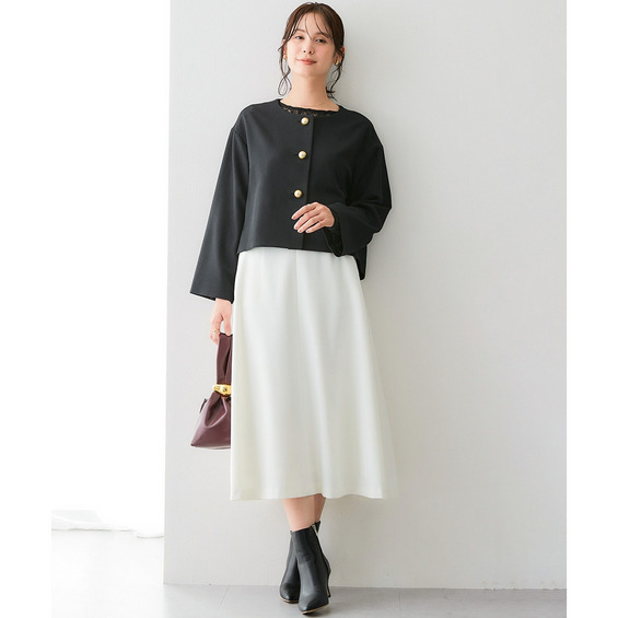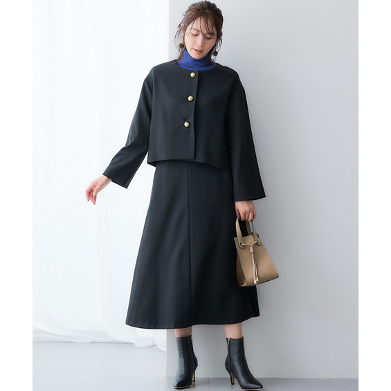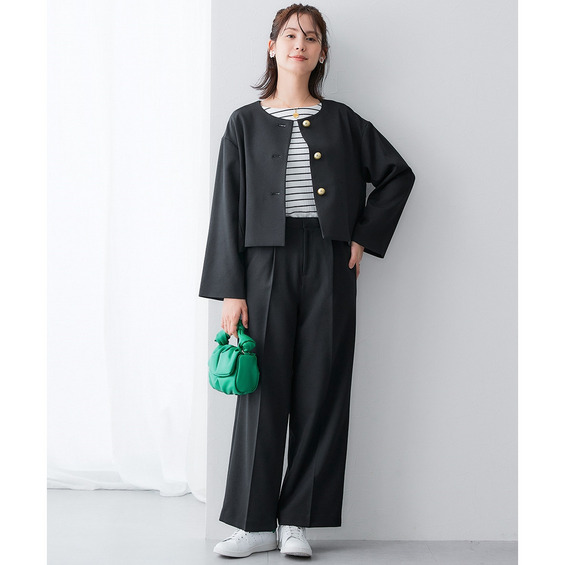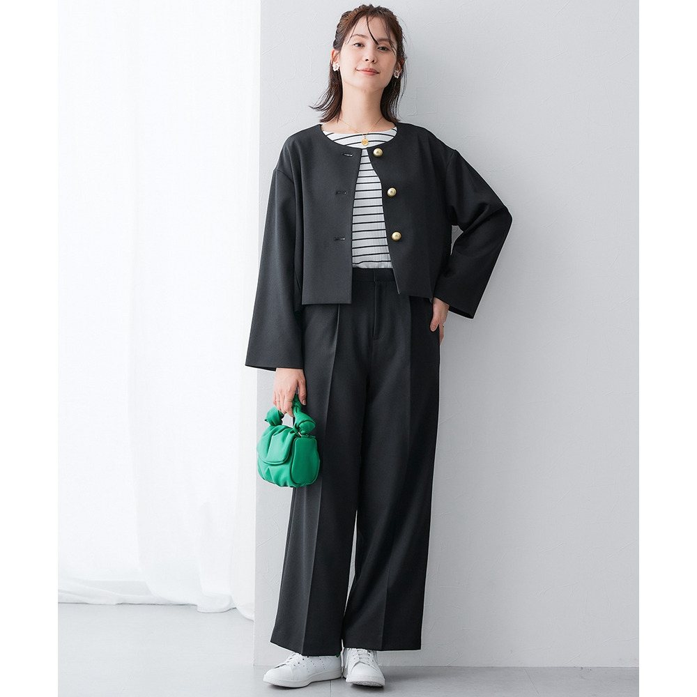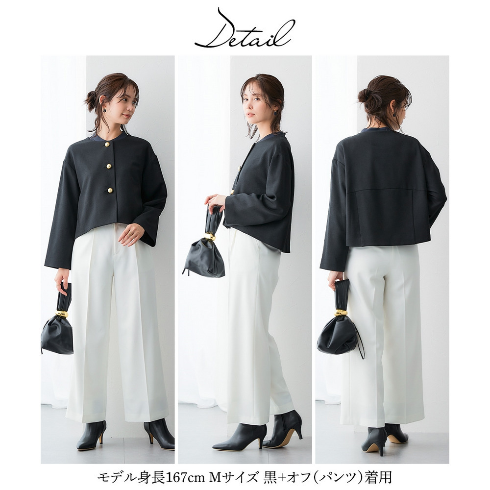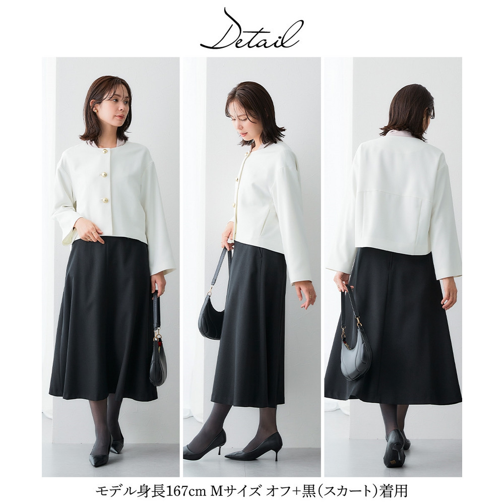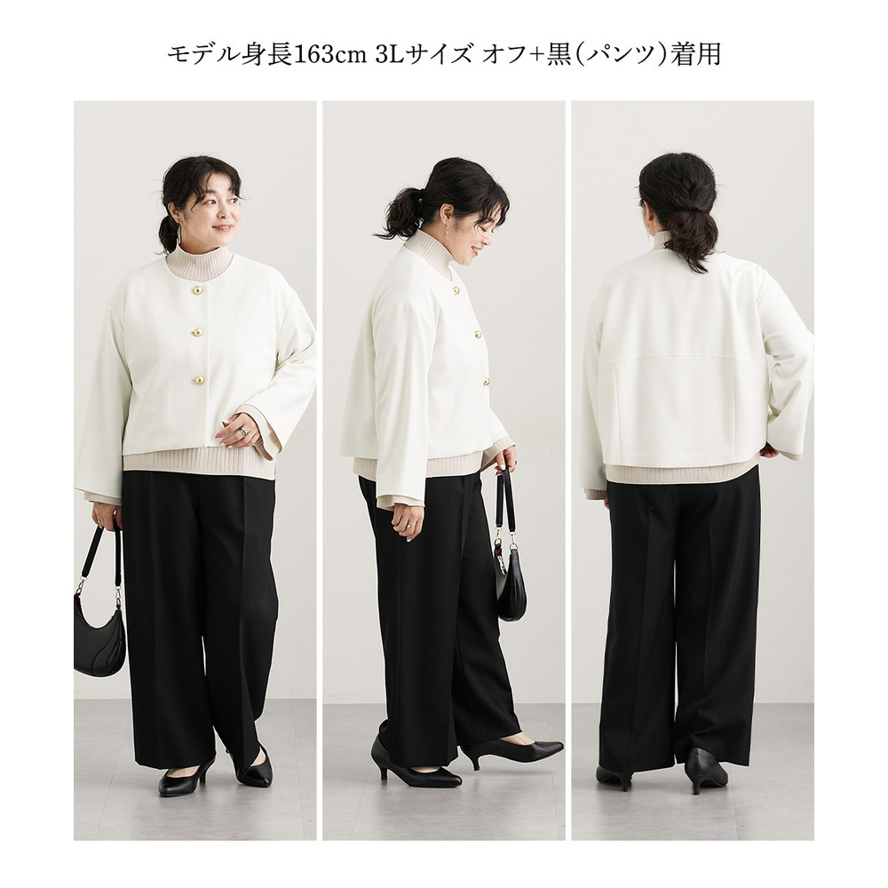 【レディーススーツ】<OTOさんコラボ>ボトムが選べるセットアップスーツ(ノーカラージャケット+ワイドパンツまたはロング丈フレアスカート)(ストレッチウール調シリーズ) 大きいサイズ