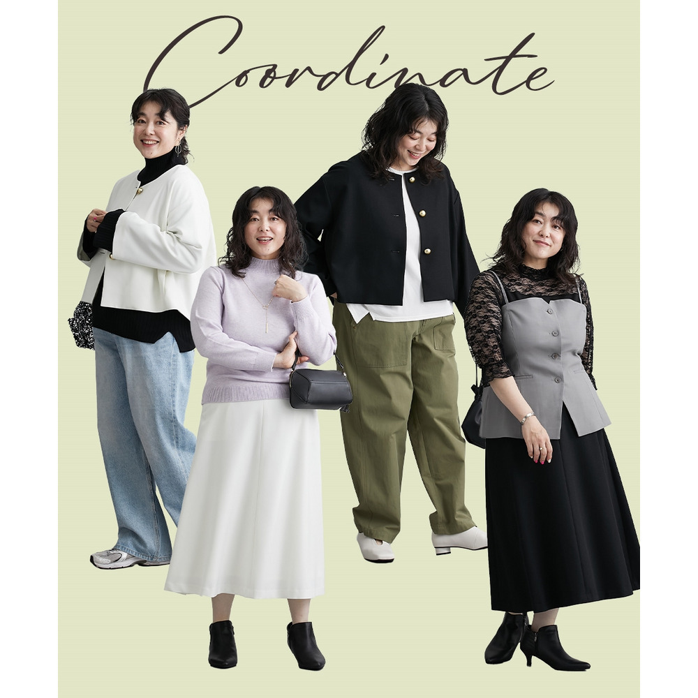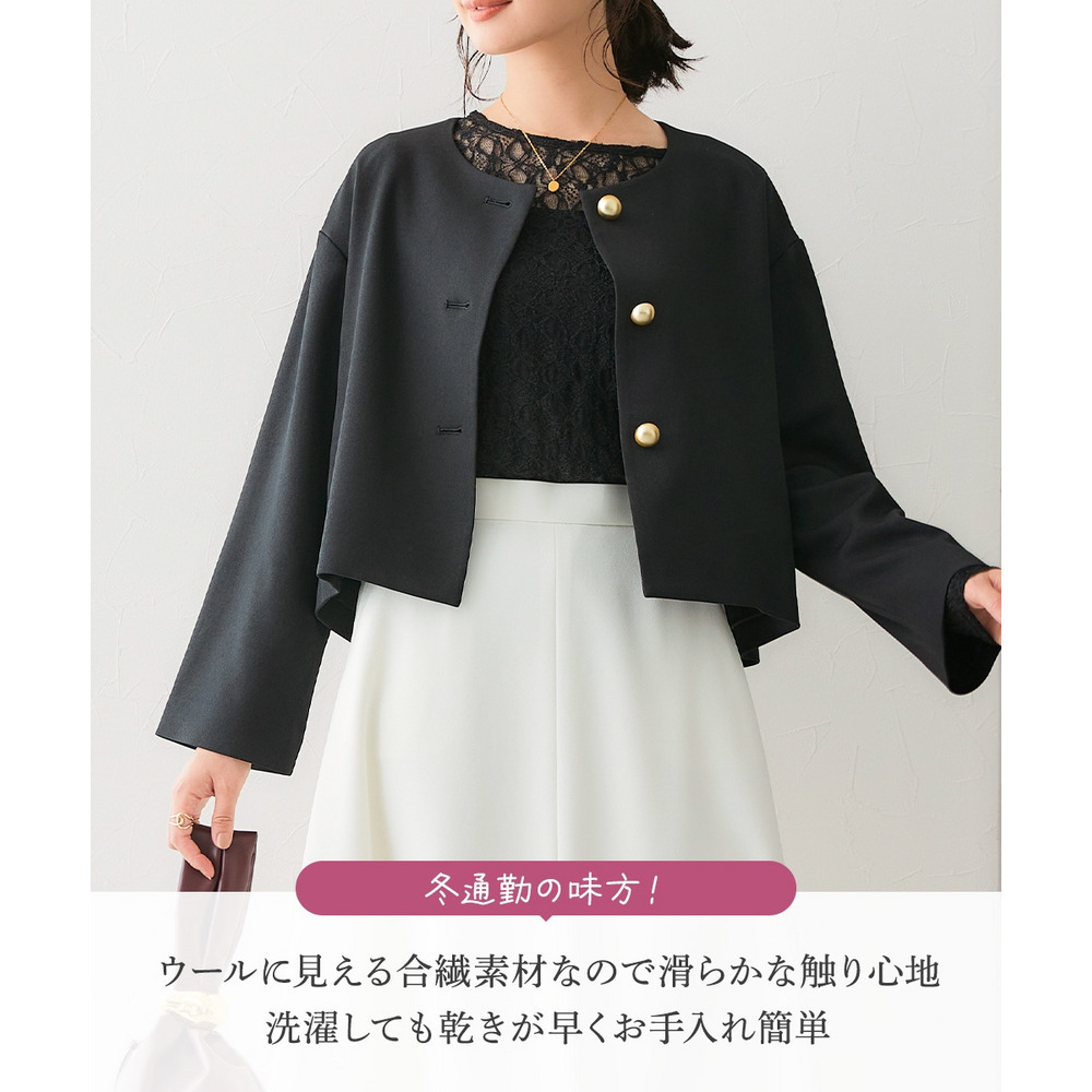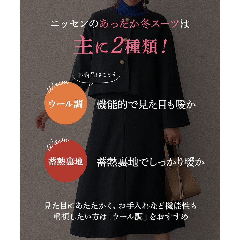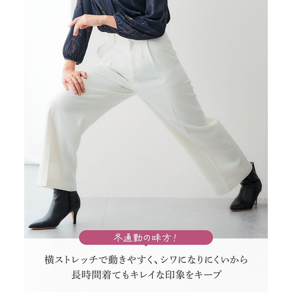 ・冬にちょうどいい厚みのあたたかみのあるウール調素材しわになりにくいので、長時間の着用でもきれいが続きます!ストレッチ入りなので着心地◎・おうち洗いができる素材&仕様にしておりますので、取り扱いもラクチン☆忙しい働く女性・ママにもぴったり