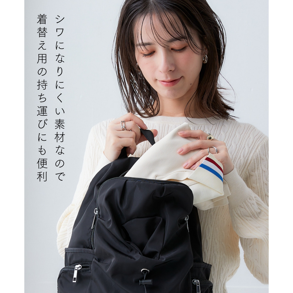 ポリエステルなのでシワになりにくく、乾きやすいため普段使いにも、持ち運びにも便利。