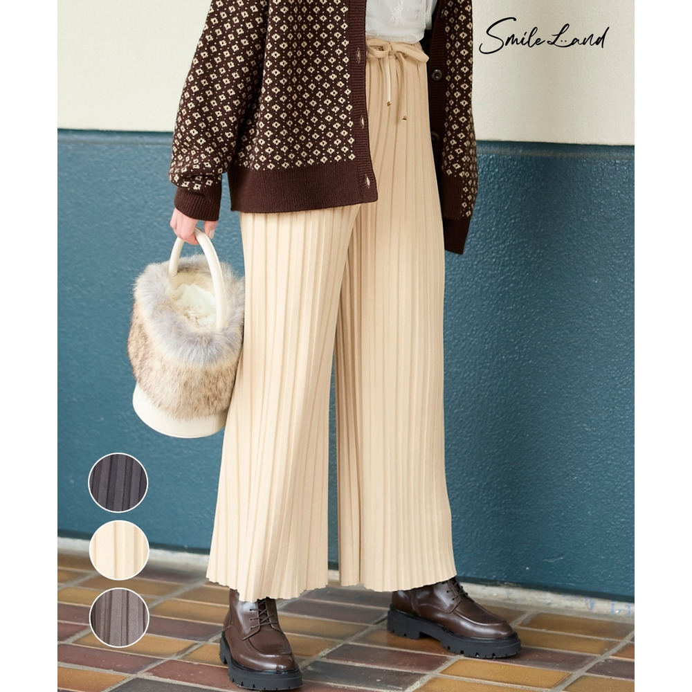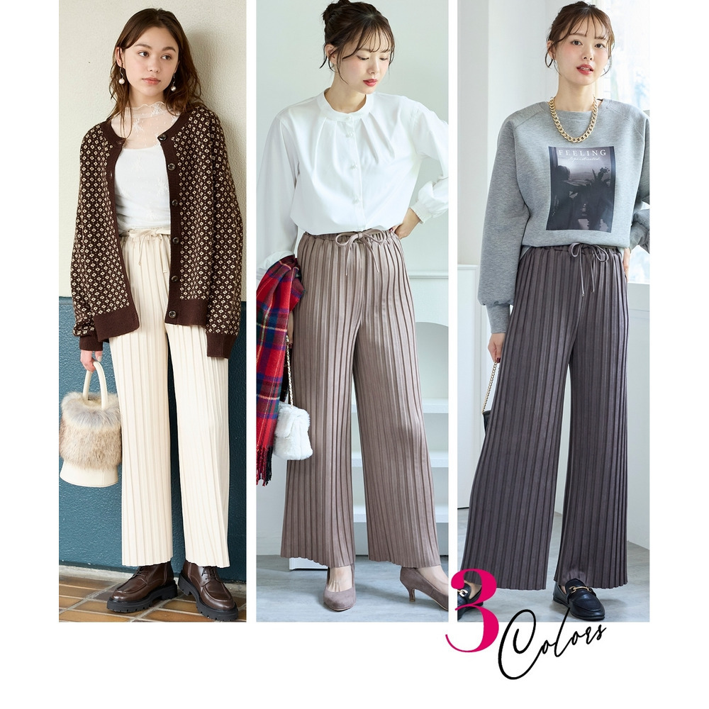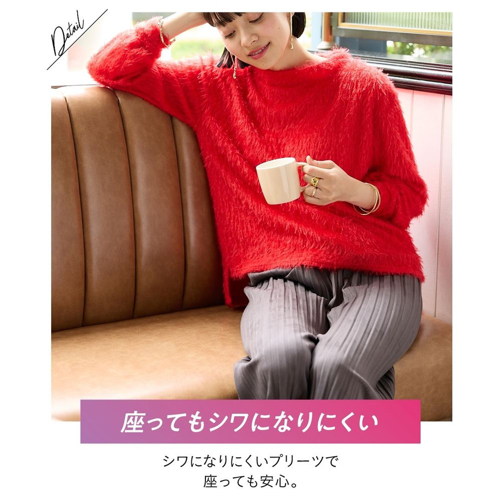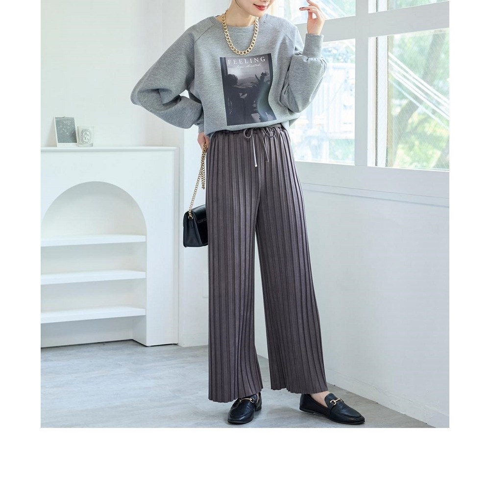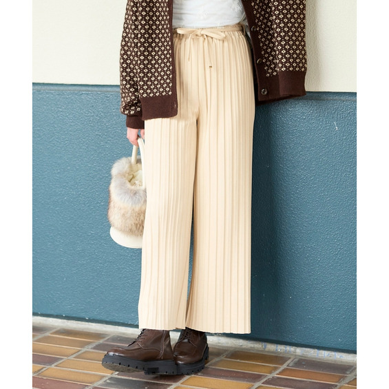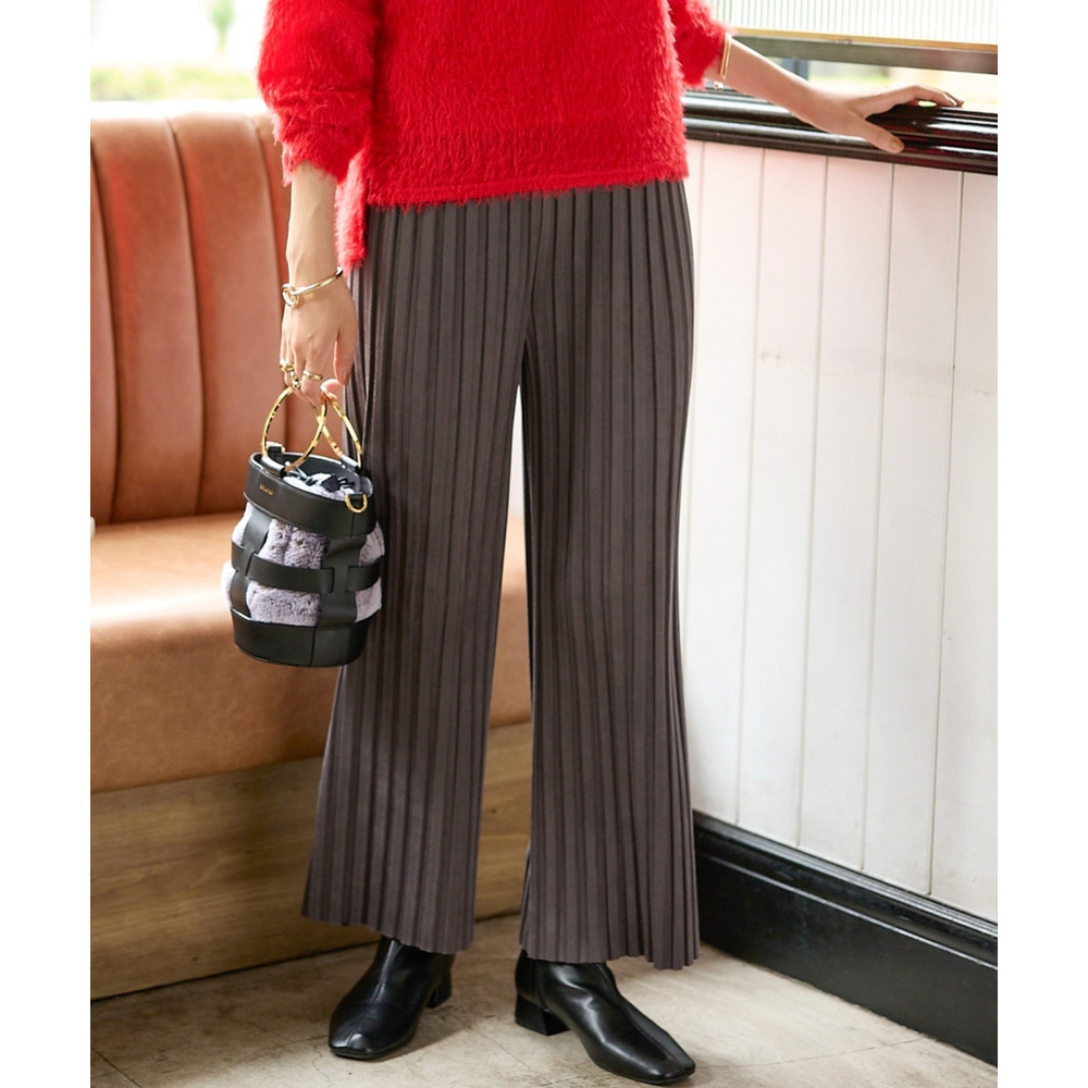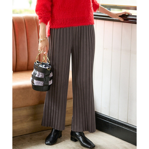 くっきり入ったプリーツとスッキリとしたストレートシルエットが縦見え・細見えを叶えてくれるパンツ。