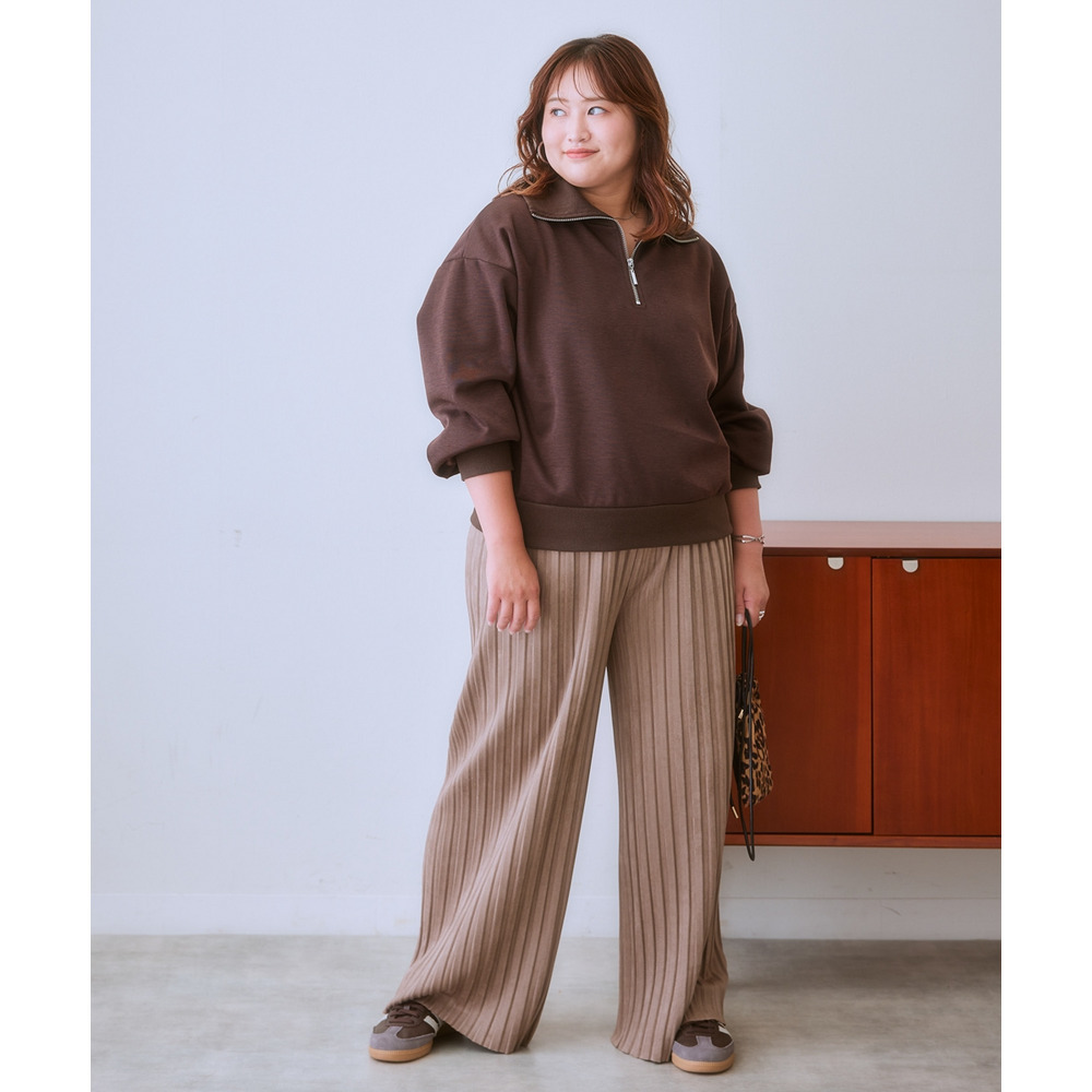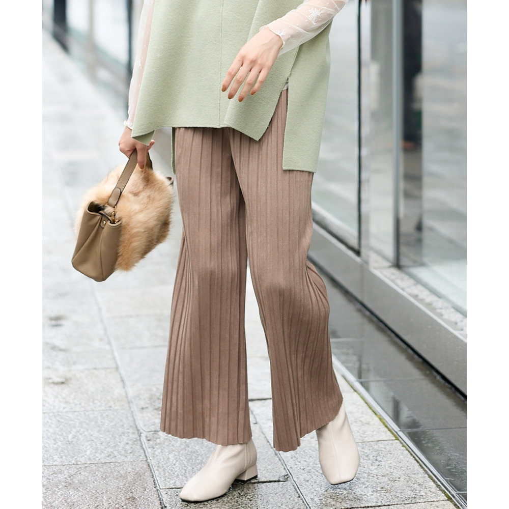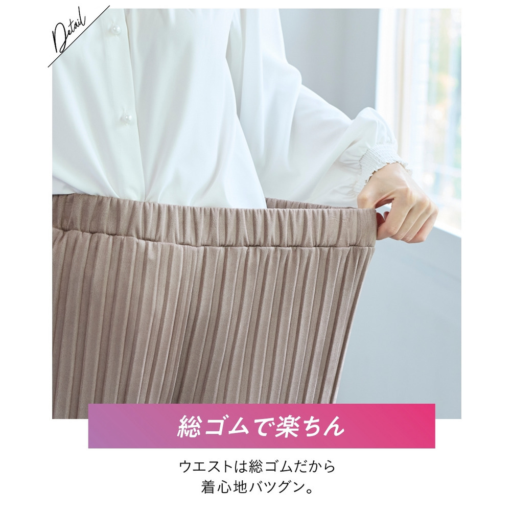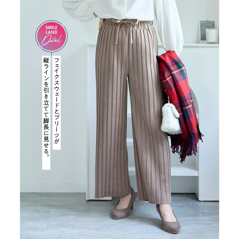 フェイクスウェードプリーツパンツ(ゆったりヒップ) 大きいサイズ