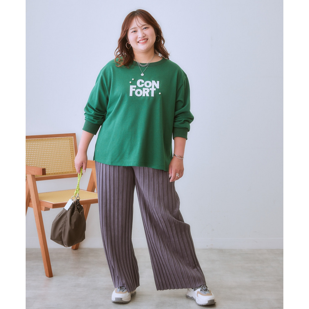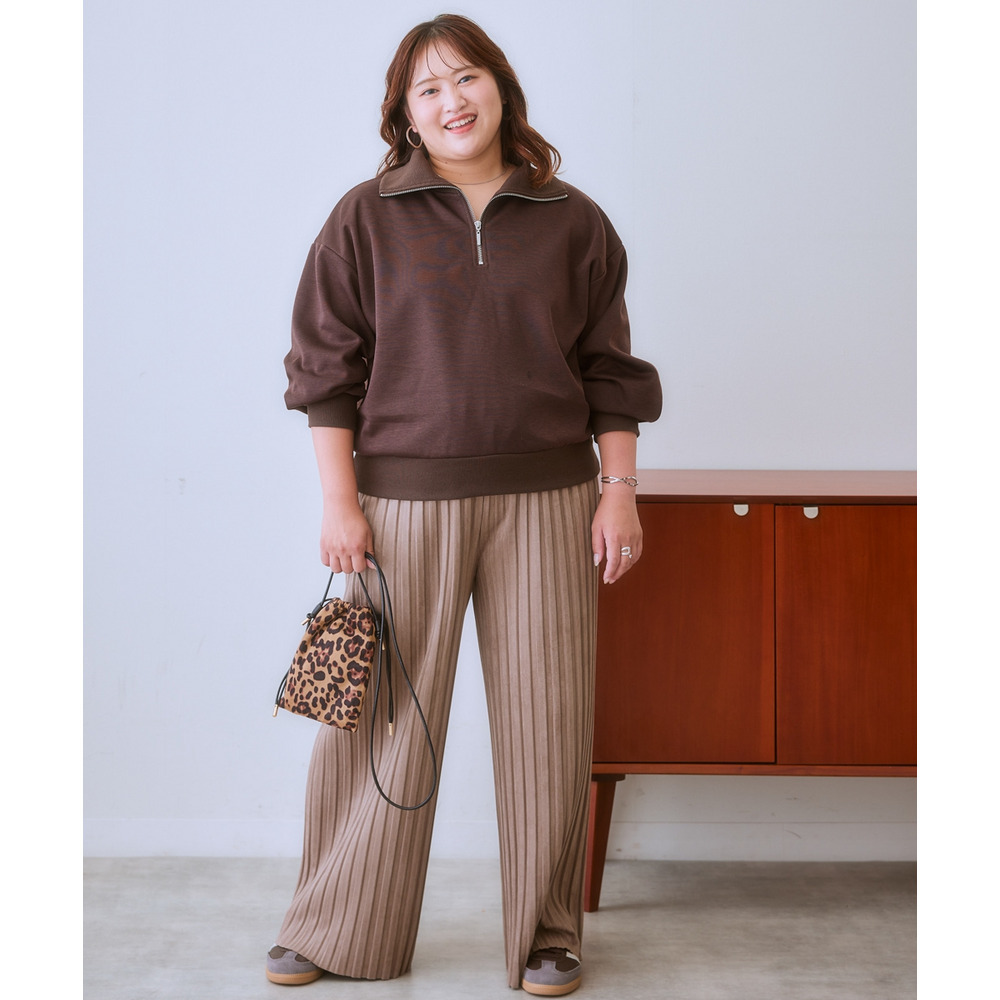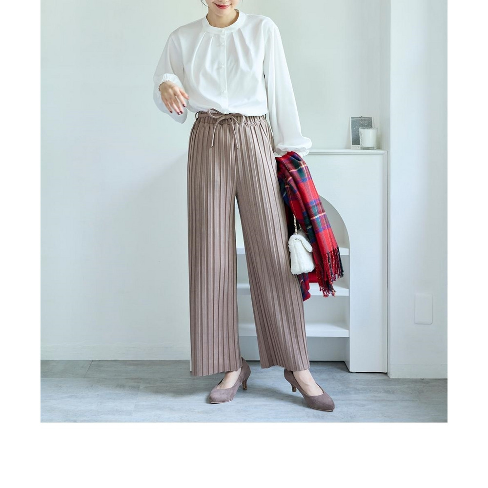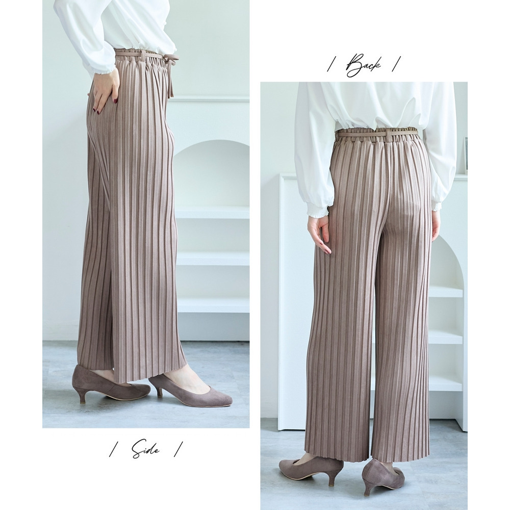 フェイクスウェードプリーツパンツ(ゆったりヒップ) 大きいサイズ