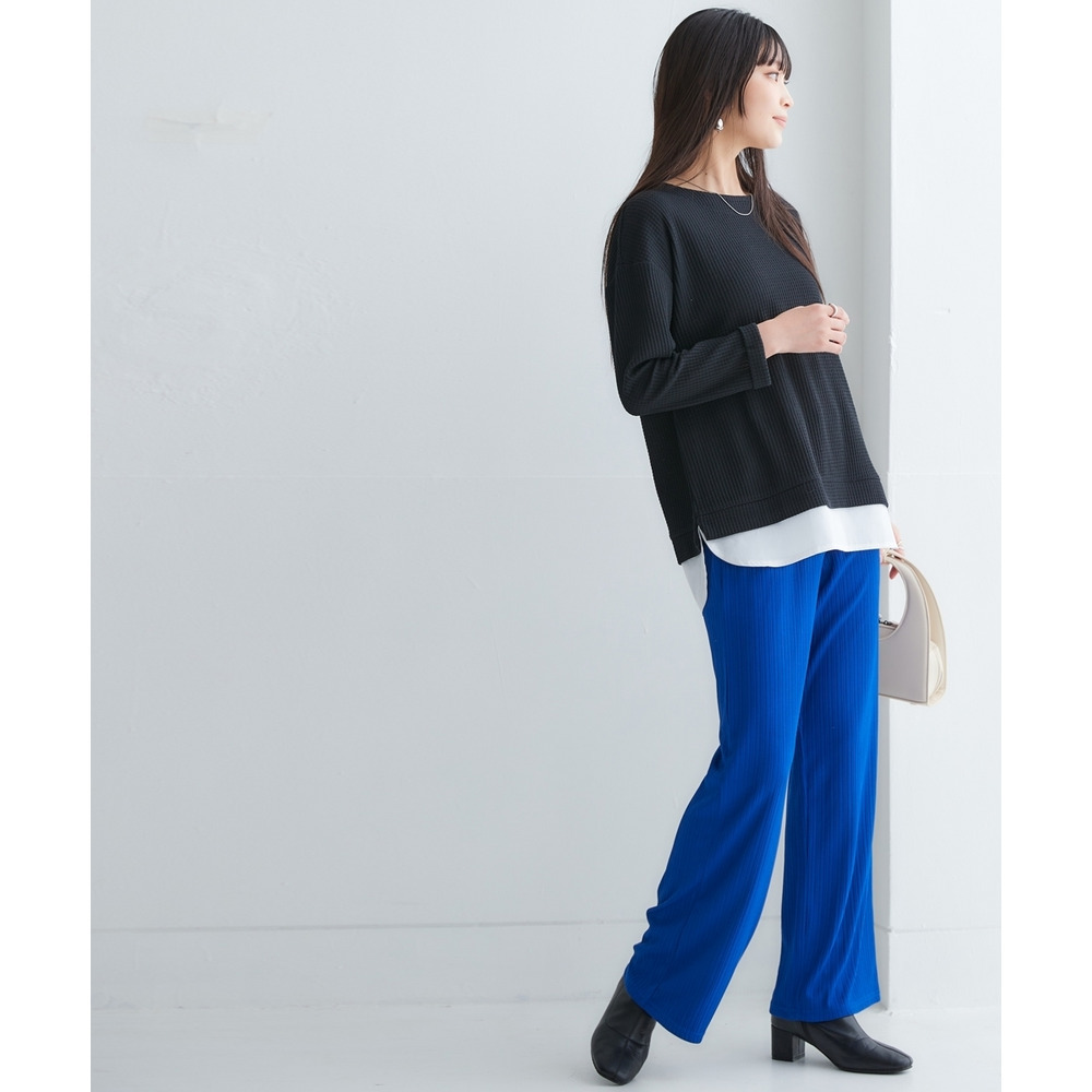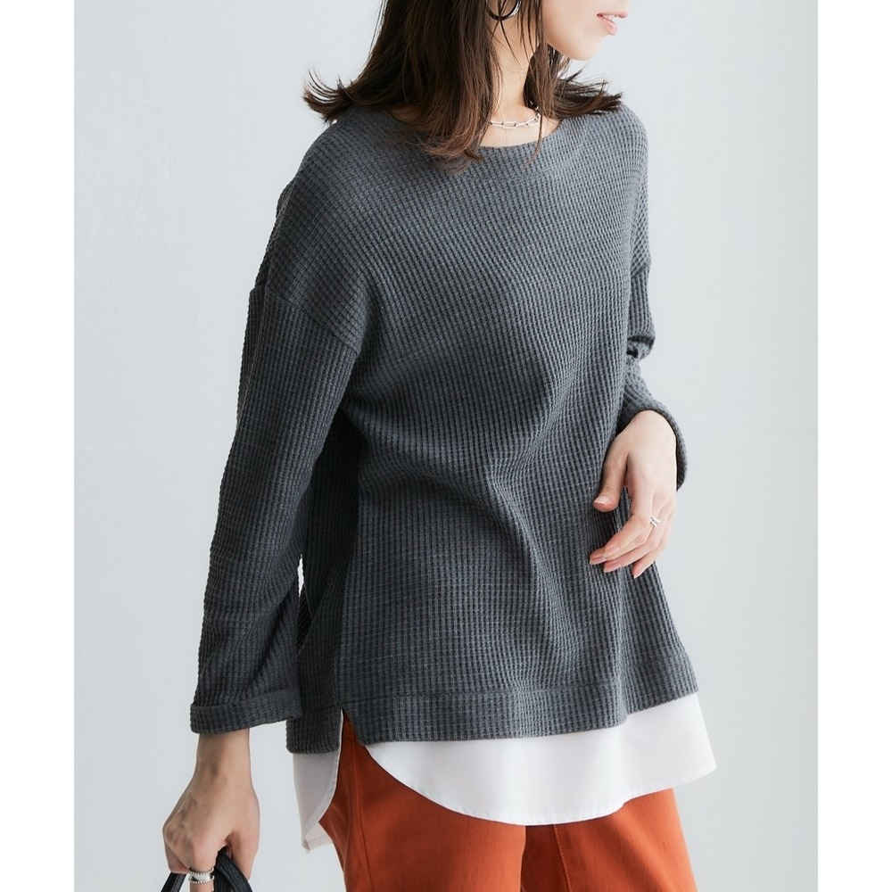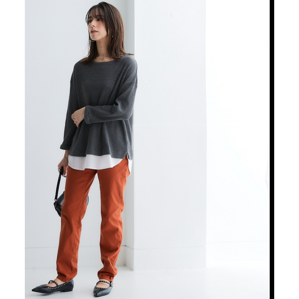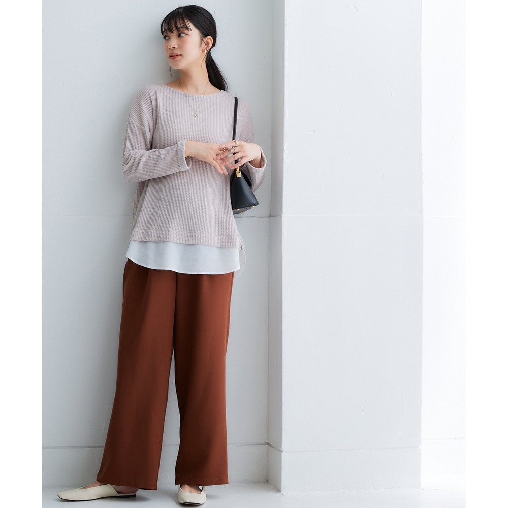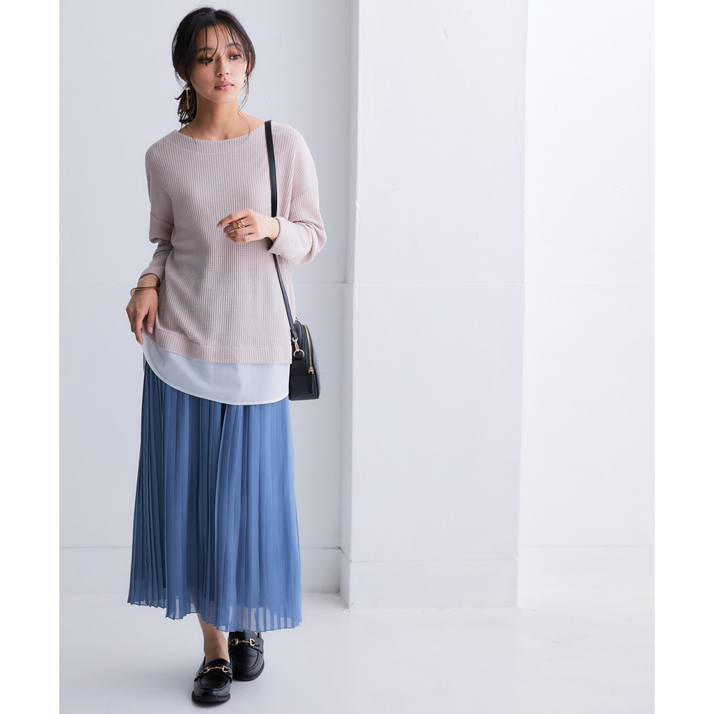 重ね着風なトップスなので1枚で着て、ボトムはパンツでもスカートでも合わせやすいです。