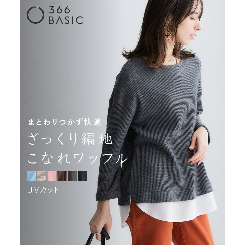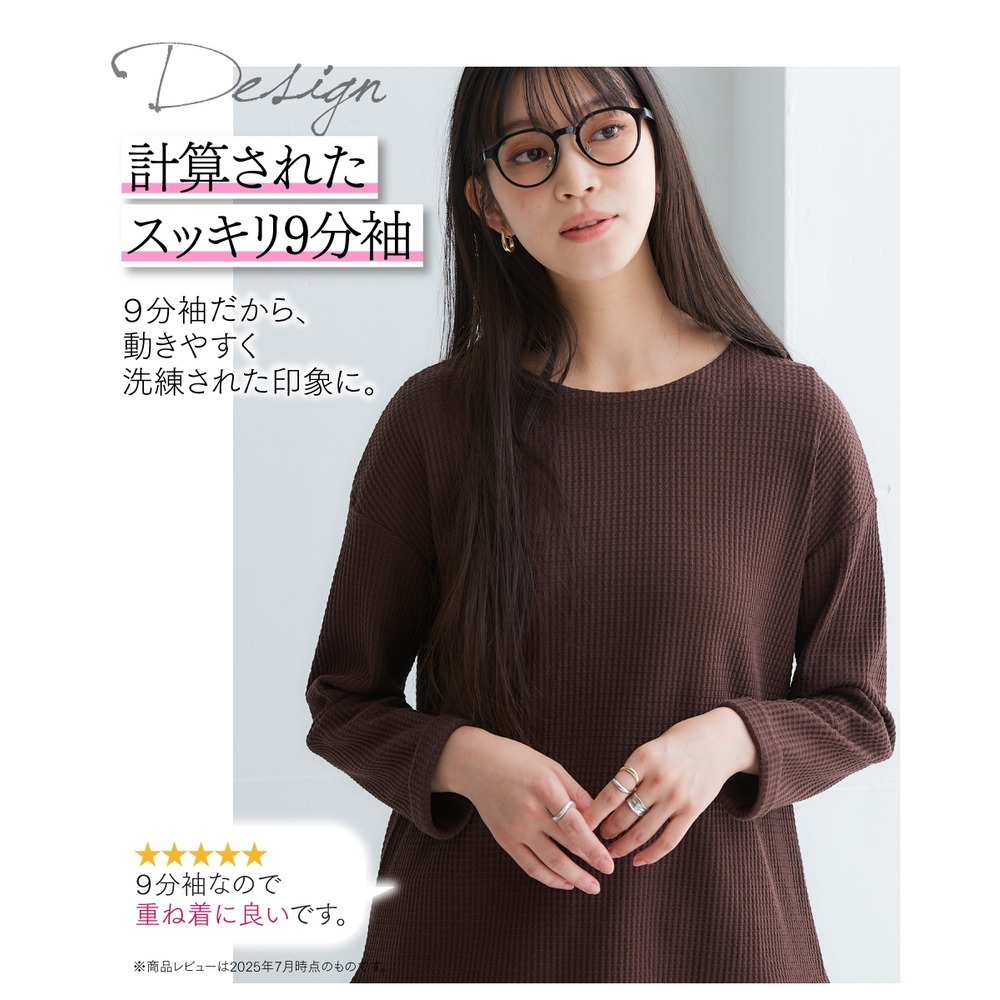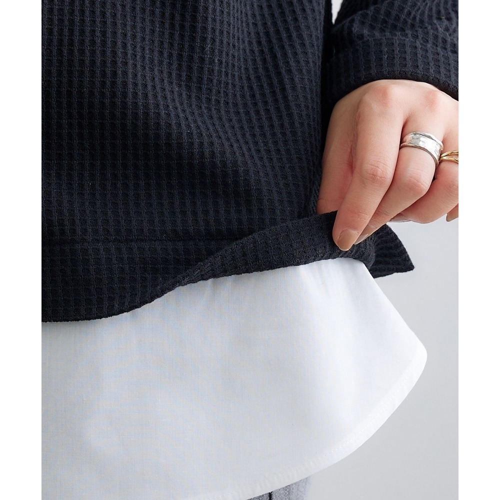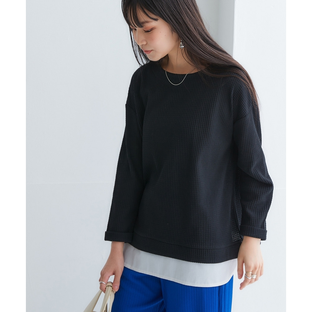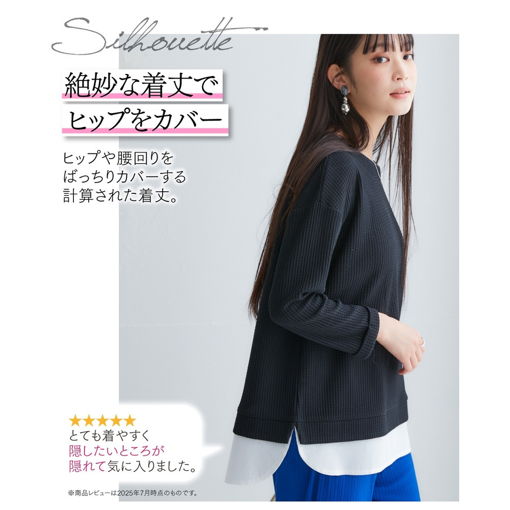 ワッフル素材重ね着風トップス(9分袖)(UVカット) 大きいサイズ