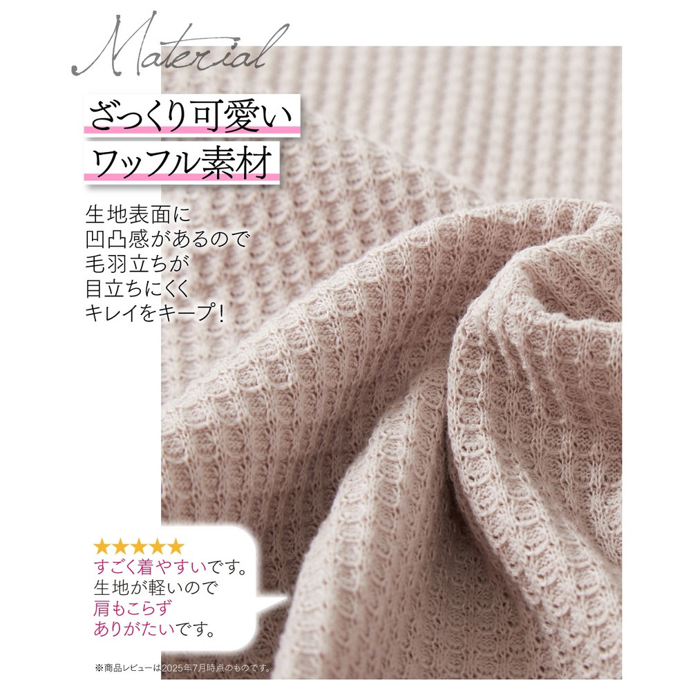 ざっくりと大きめの編み目が可愛いワッフル素材。