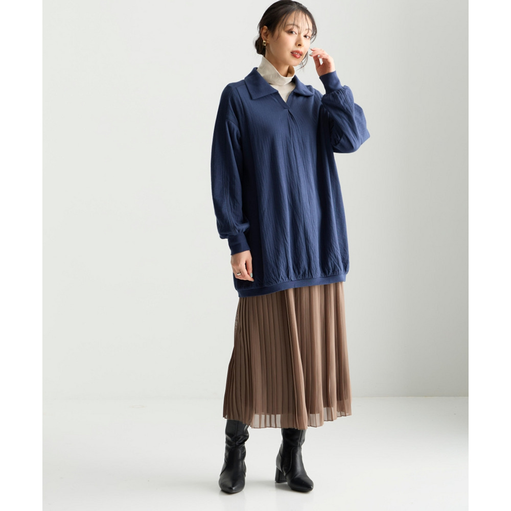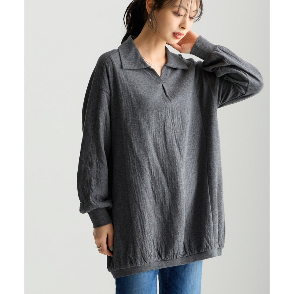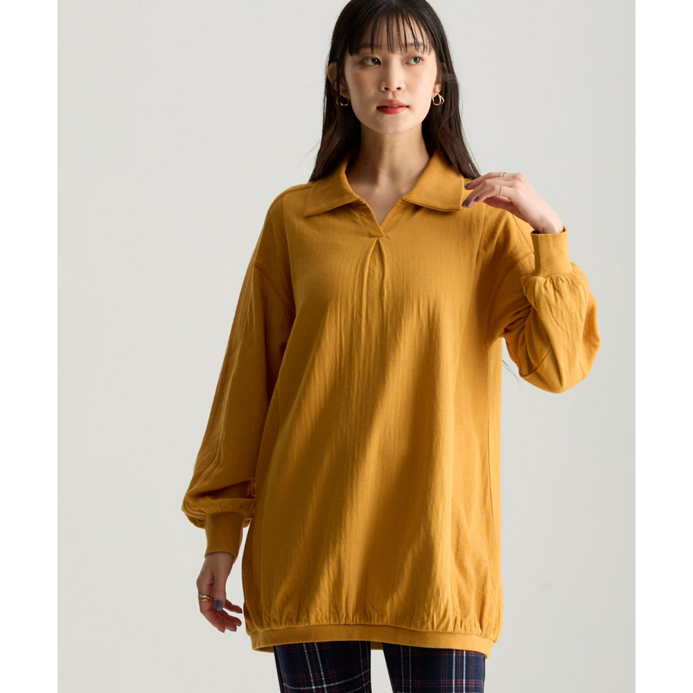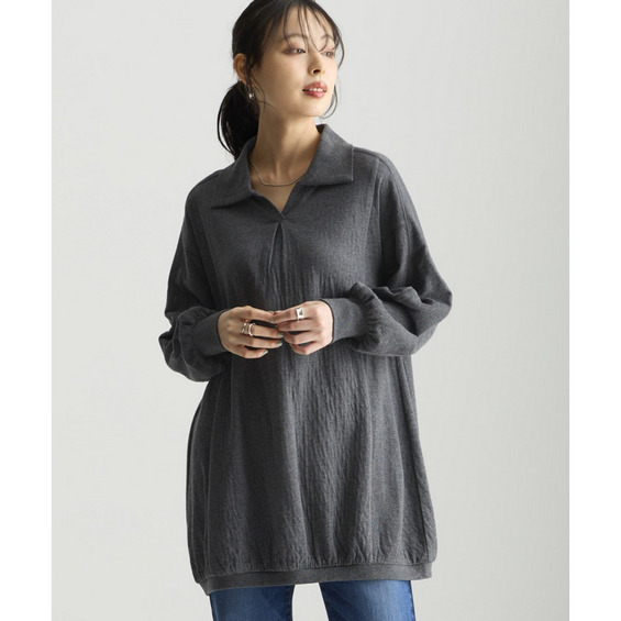 綿100%甘編みやわらかカットソースッキリ見えポロチュニック 大きいサイズ