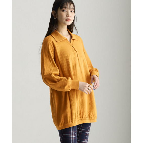 • 綿100%甘編みやわらかカットソースッキリ見えポロチュニック 大きいサイズ21