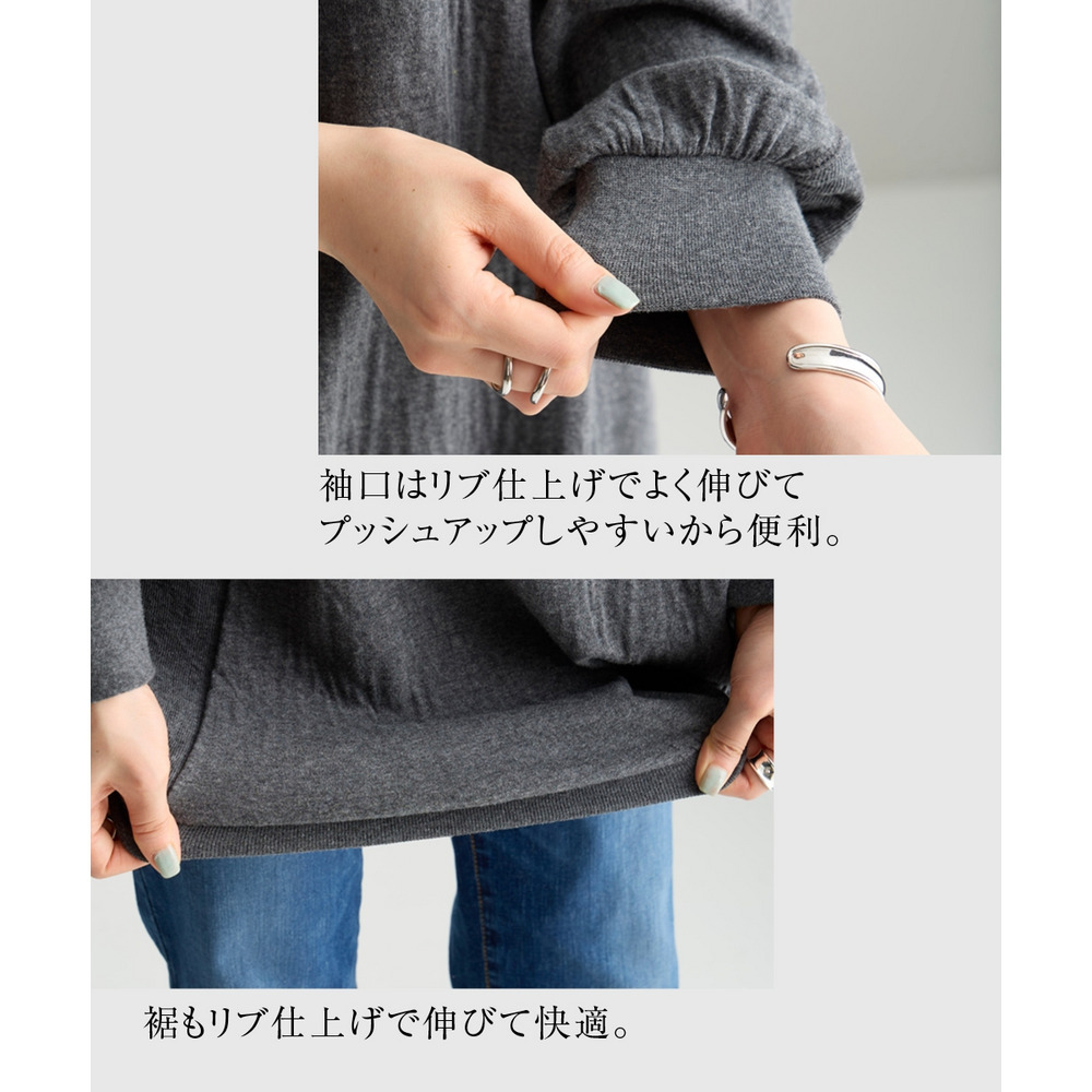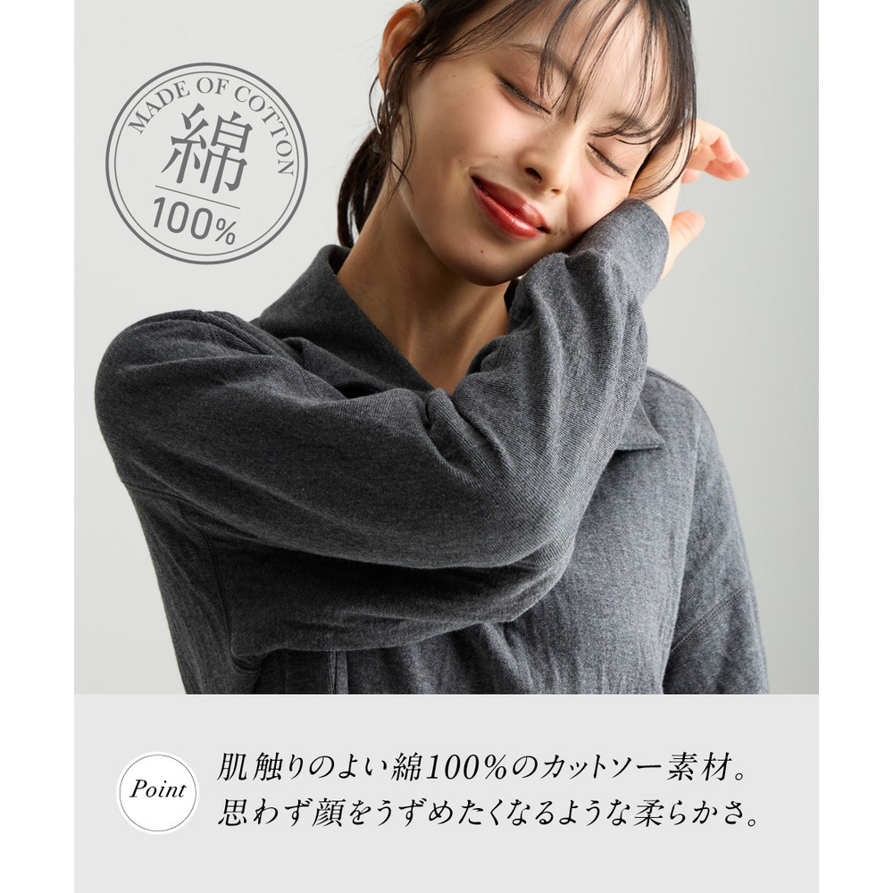 素材 品質=綿100% 透け感:なし 伸縮性:あり 生地の厚み:普通 光沢感:なし 裏地:なし ポケット:なし 季節:春・秋・冬向き シルエット:ややゆったり