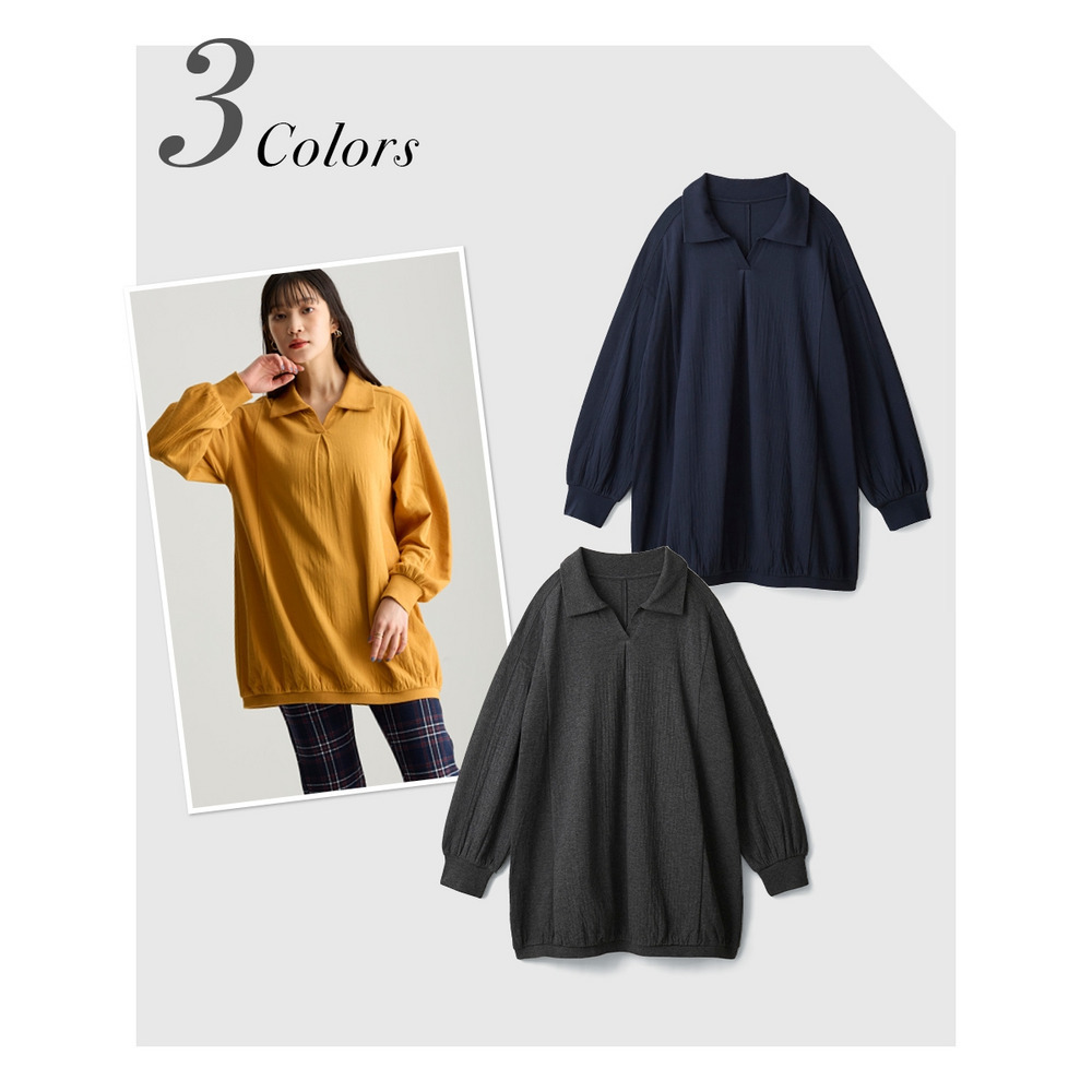 • 綿100%甘編みやわらかカットソースッキリ見えポロチュニック 大きいサイズ3
