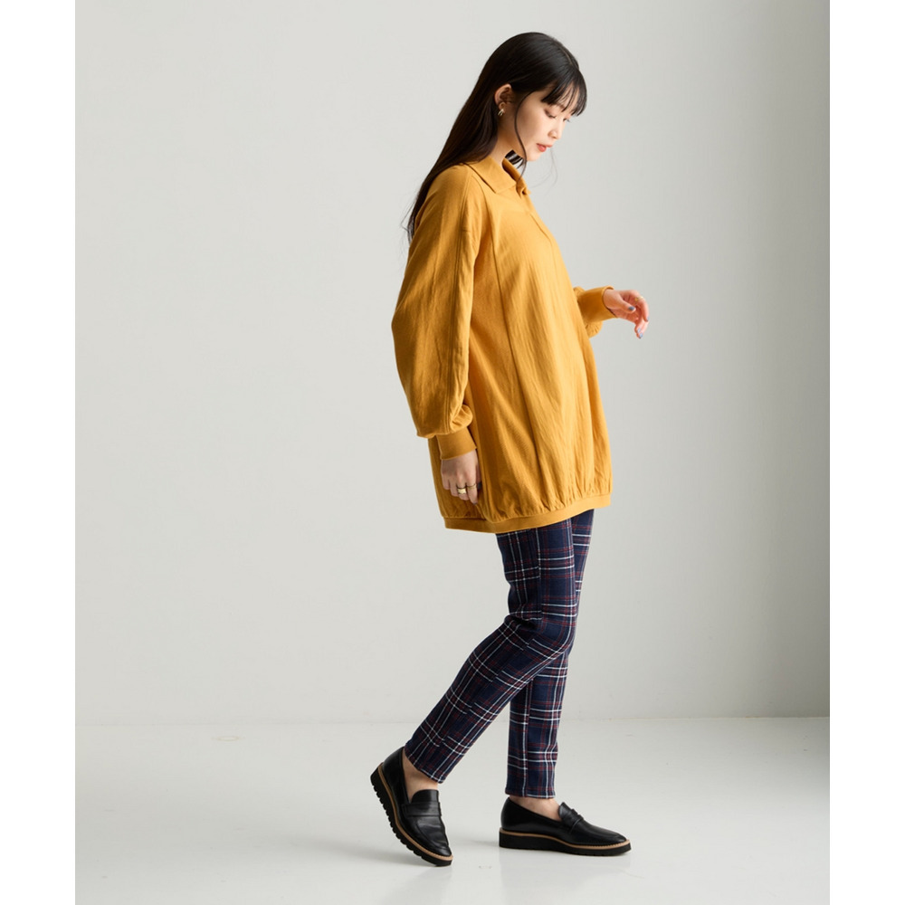• 綿100%甘編みやわらかカットソースッキリ見えポロチュニック 大きいサイズ11