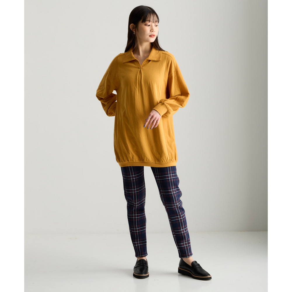 • 綿100%甘編みやわらかカットソースッキリ見えポロチュニック 大きいサイズ5