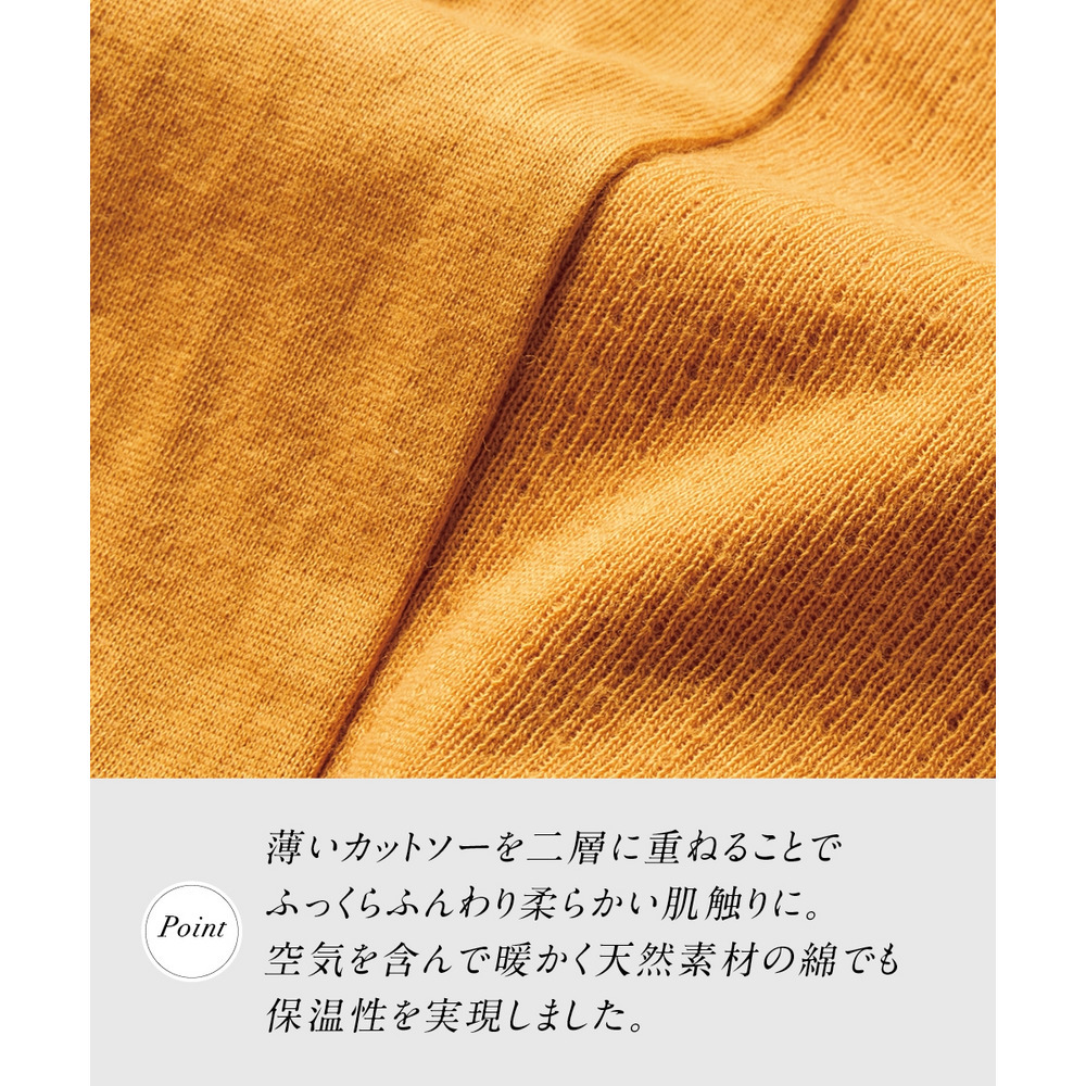 綿100%の柔らかい素材を何層にも重ねて、ふんわり空気をまとった心地よさに。