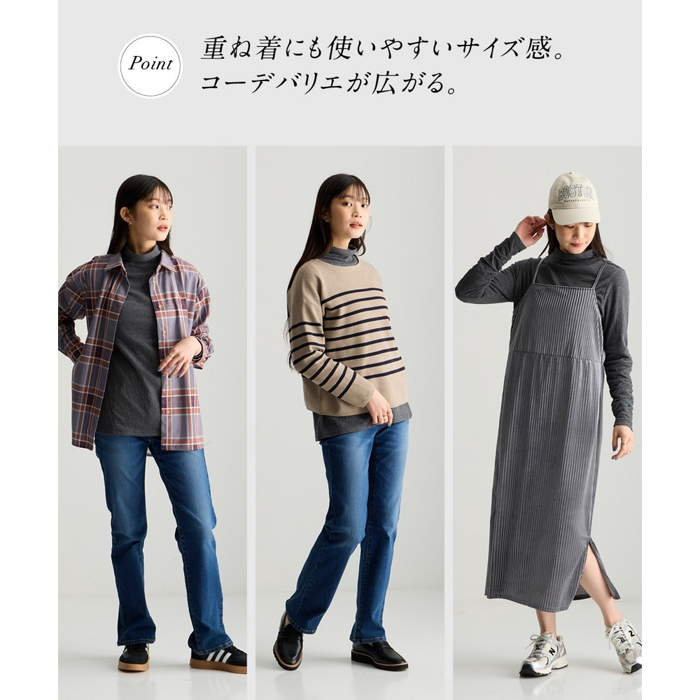 ワンピースやニットの中へ重ね着させてもかわいく、冬素材にあるチクチク感から守ってくれて快適な着心地に。