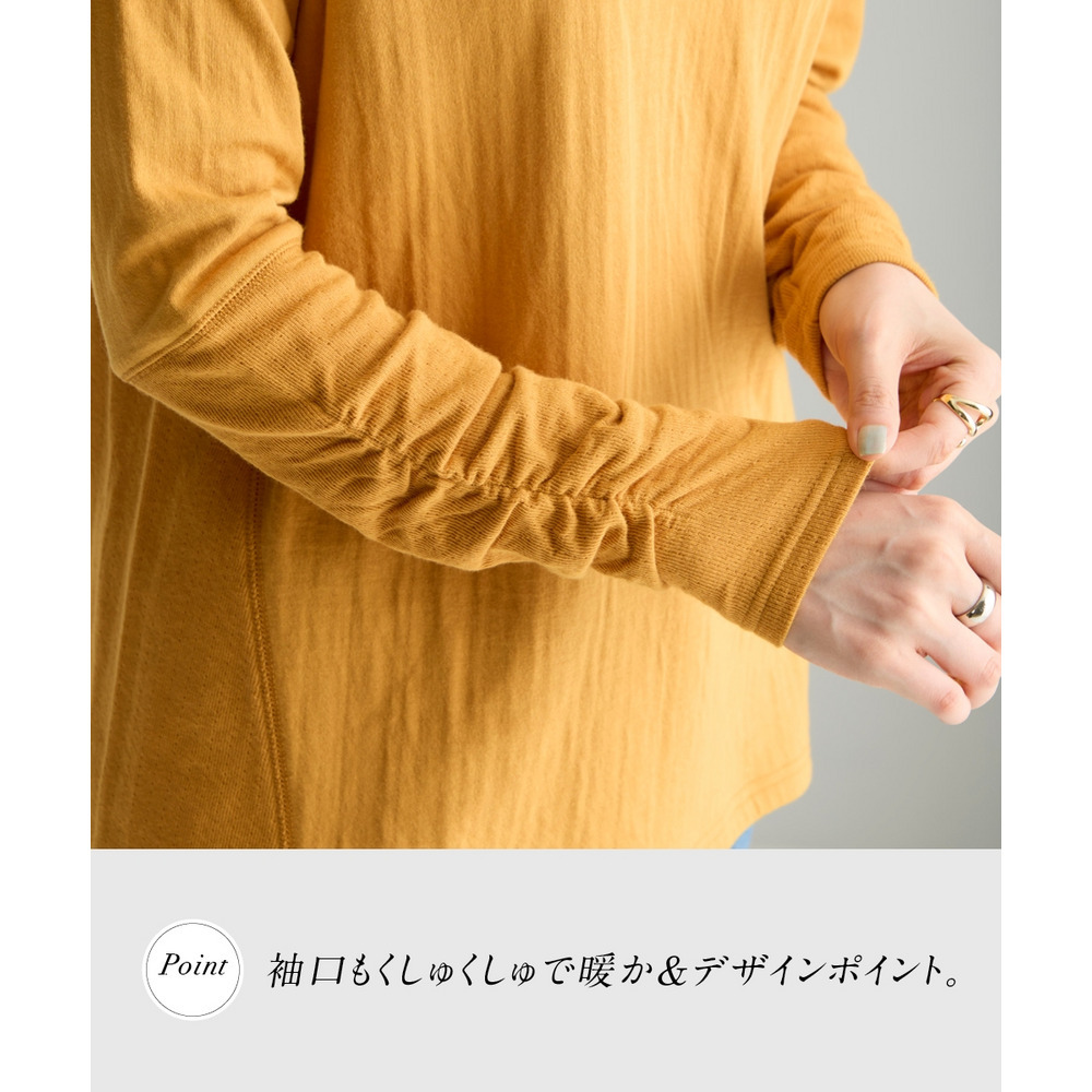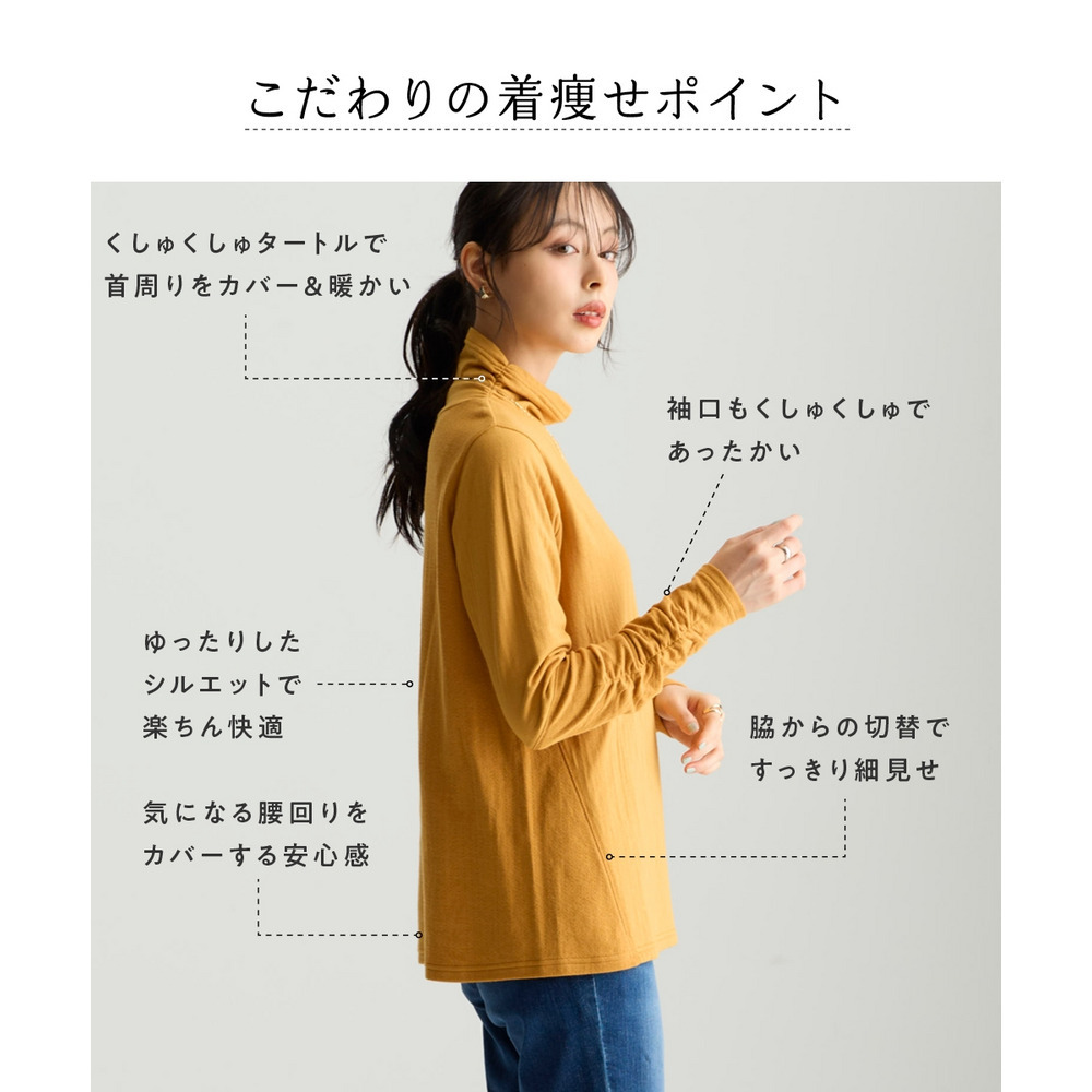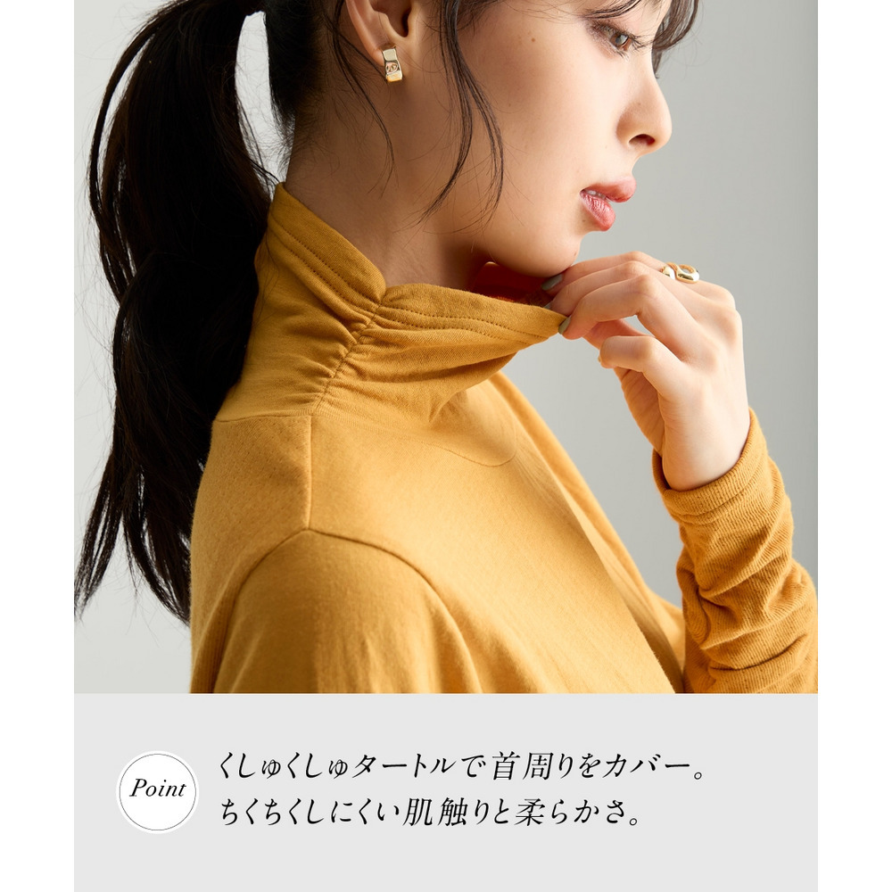 首元を包み込むくしゅくしゅタートルで冷え対策も◎ 袖口のくしゅっとデザインで手元もほんのりあったかくかわいく見せてくれます。