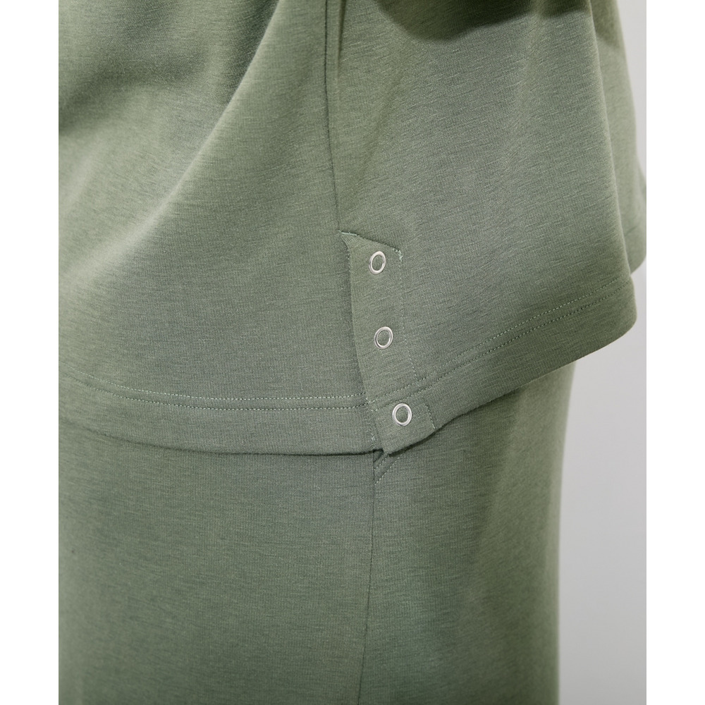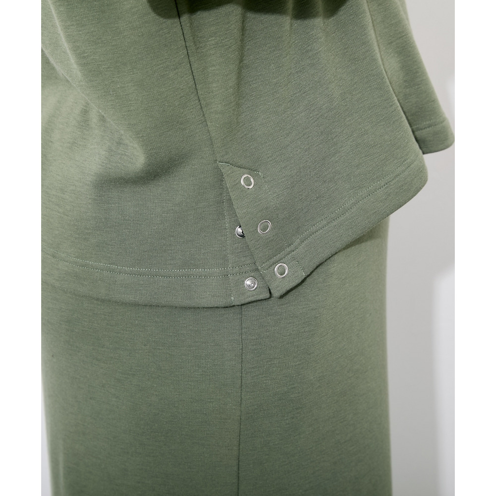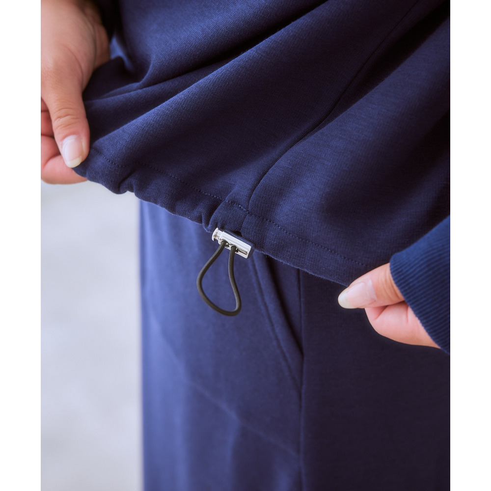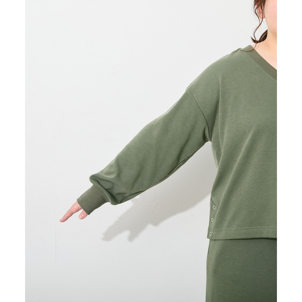 トップスは、Vネック、ハーフジップ、異素材切り替え、裾シャーリングの4種類から選べ、それぞれが顔周りをすっきりと見せたり、気になるお腹周りを自然にカバーしたりと、嬉しい工夫が満載です。